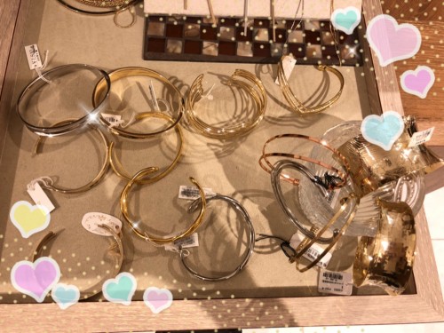 さて、暑くなってきて、肌の露出も増えてきますよね!!!やはり、そうなると、ブレスレットを着けたくなりますね✨✨ 重ね付けしたり、ワンポイントで華奢なものを付けたり、、、色々楽しめますよね😍😍 今は太めのバングルが人気で、入荷してもすぐ色欠けしてしまったり、完売してしまったりしています! 太めのバングルをつけることにより、細く見せられたり、エレガントに見せたりできますよー( ´ ▽ ` ) お得なsetのブレスレットもございます!!! ぜひこちらもご試着いただけますので、お試しくださいませー・*
