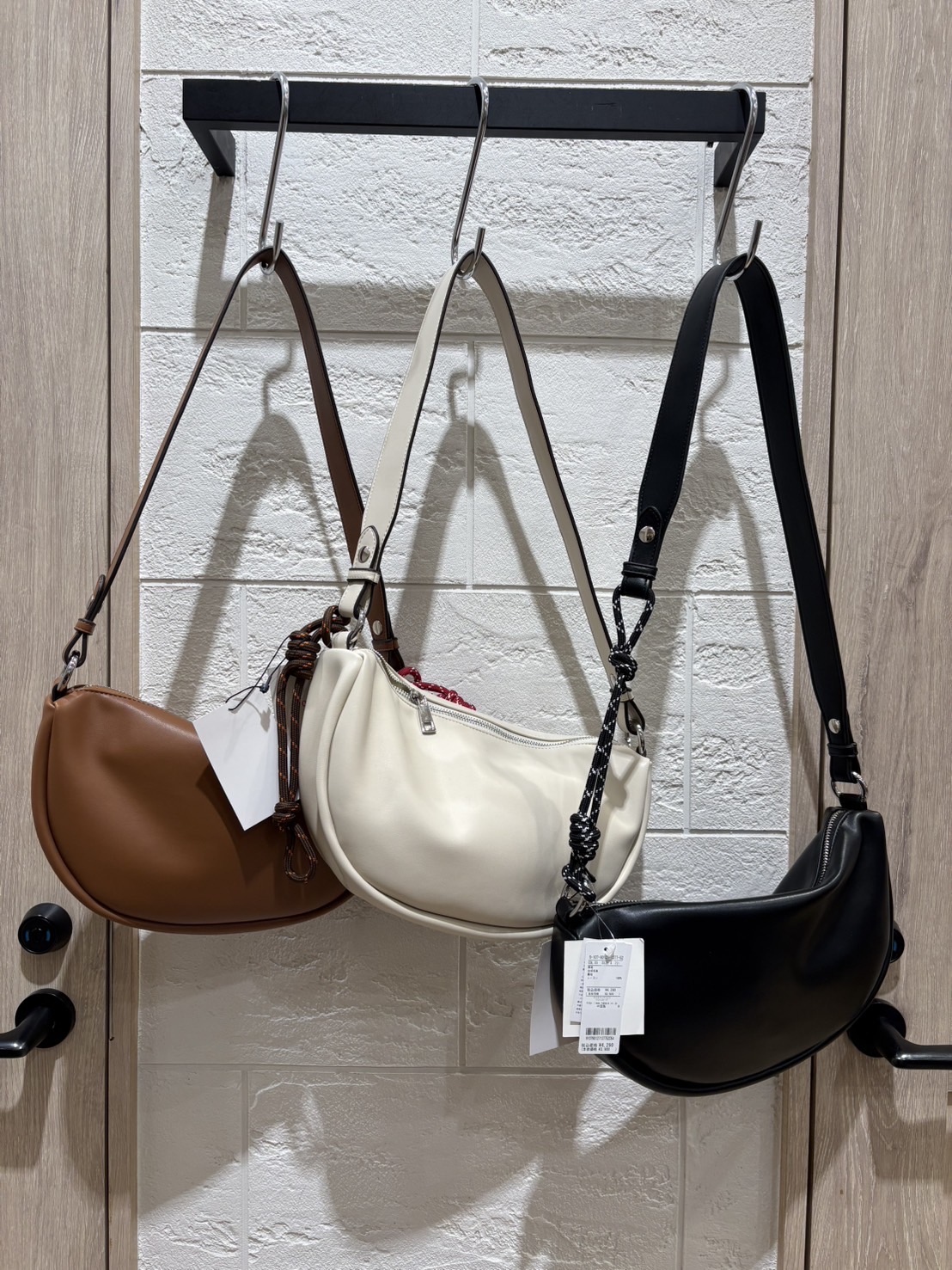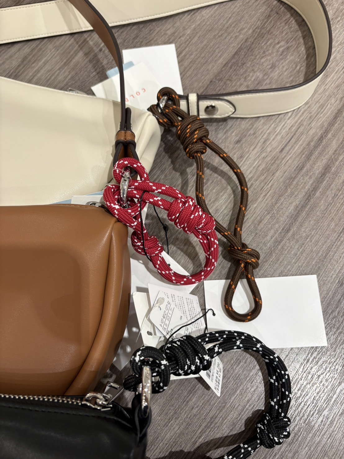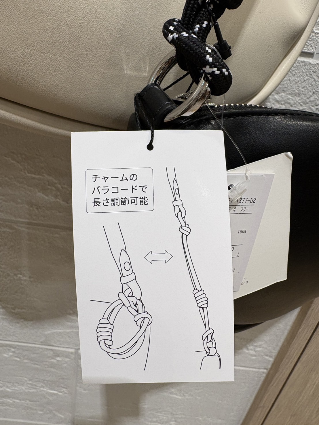 お色はアイボリー、ブラック、ブラウンの3色展開。 このバックの魅力はチャームのパラコードでショルダーの長さを変えることができます⭐︎