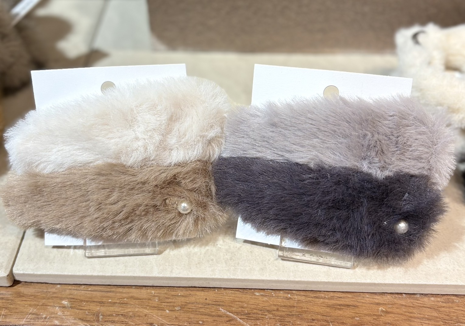 ふわふわのファー素材が とっても可愛いこちらのクリップは、 つけるだけで一気に秋冬らしい雰囲気に仕上がります! パールのワンポイントが上品で、 カジュアルにもフェミニンにも 合わせやすいデザインです。
