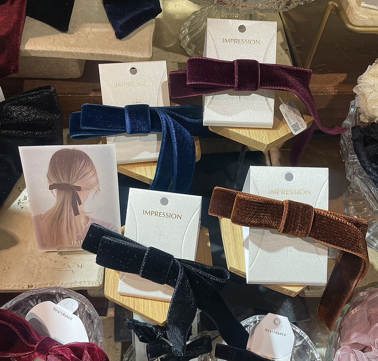 ベロアリボンといえば、 ガーリーな印象が強いですが、 深みのあるカラーを選ぶとガーリーになり過ぎず、 大人っぽくもお使いいただけますよ!