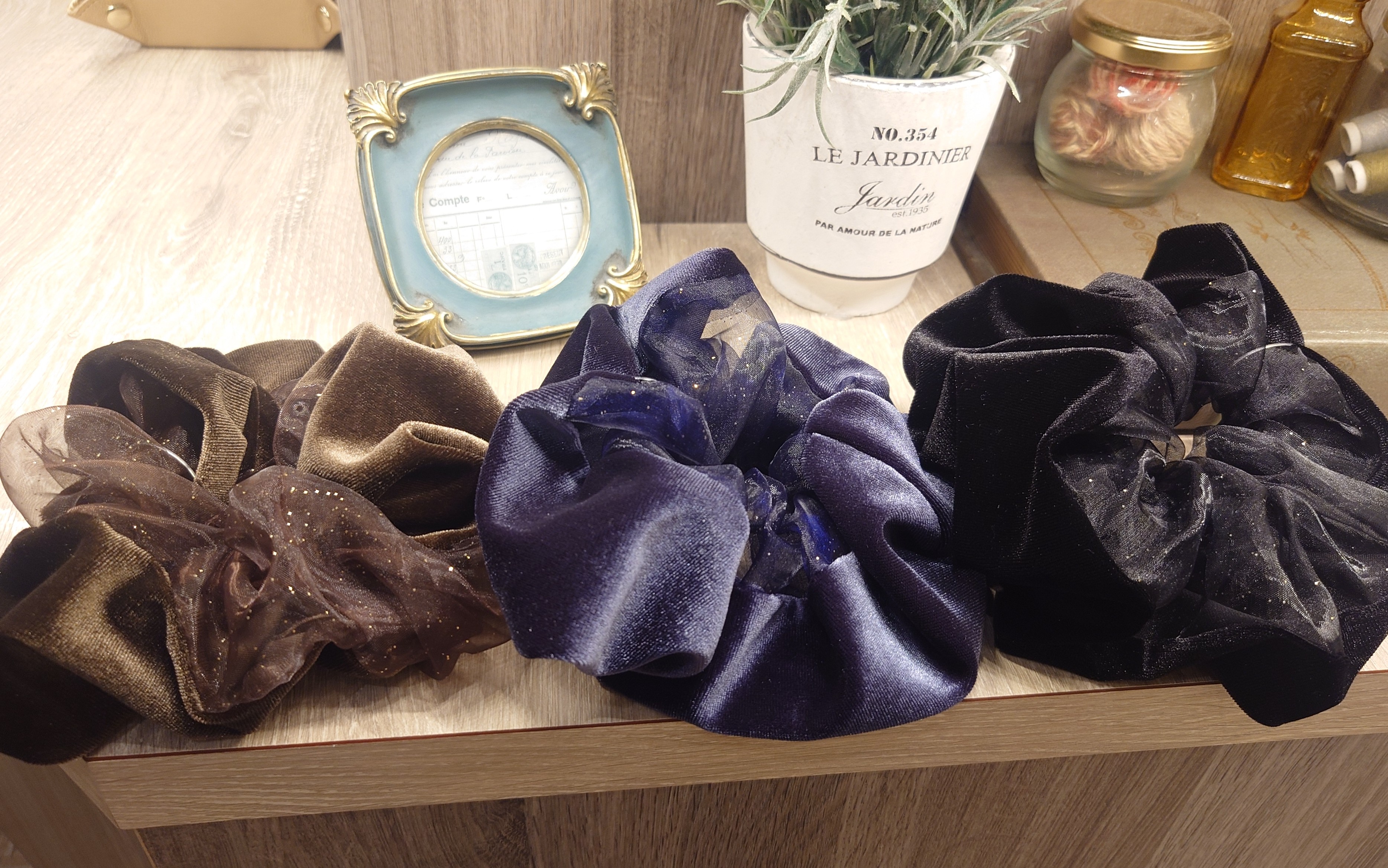 こちらはオーガンジーとベロアの素材をミックスさせたシュシュになります♪