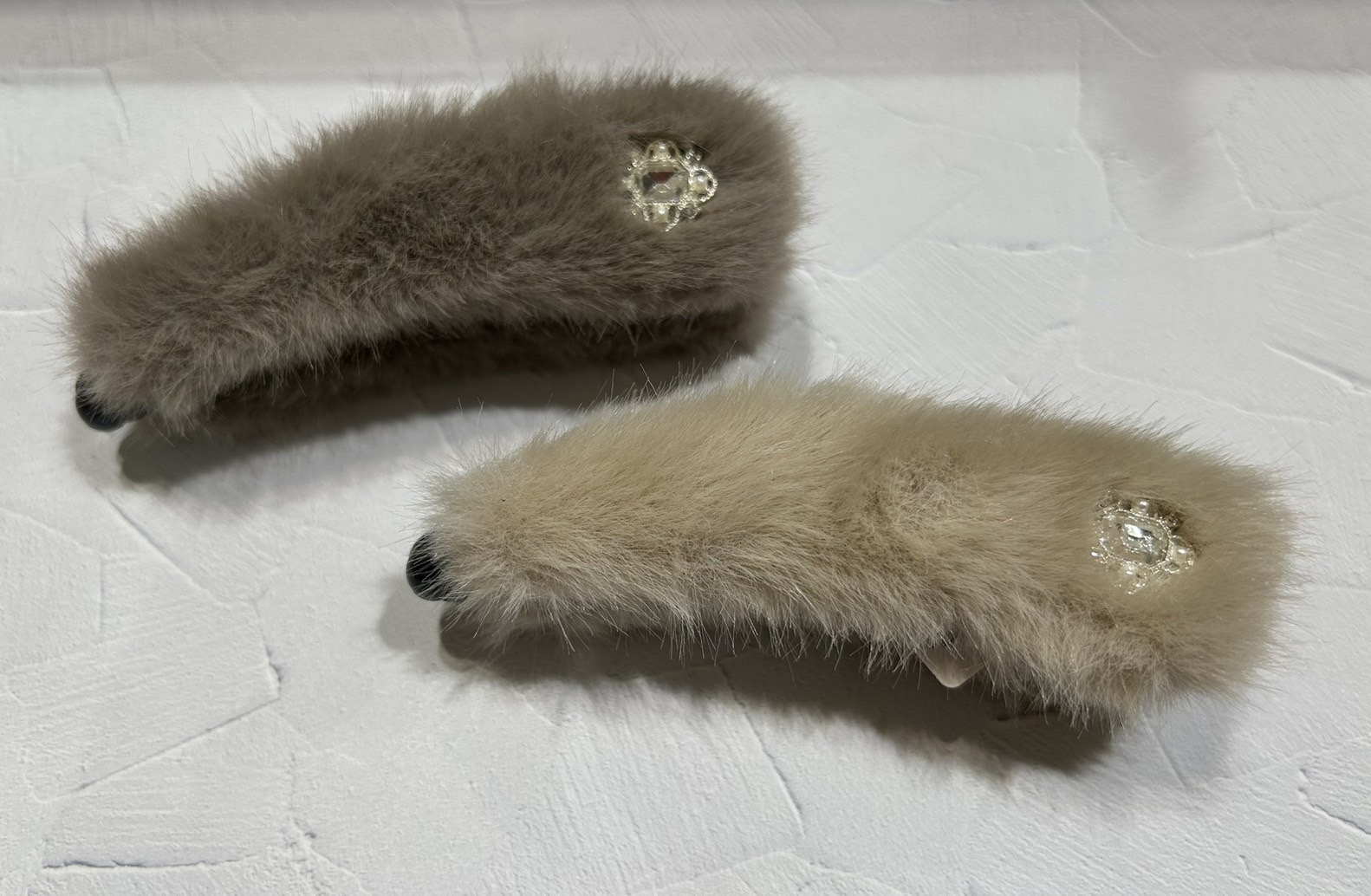 ファー素材のバナナクリップです⭐︎ ビジューがアクセントで華やかさをプラスしてくれます^_^