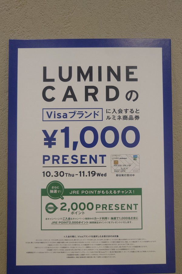 10/30(木)~11/19(水)までの期間、ルミネカードにご入会頂くと