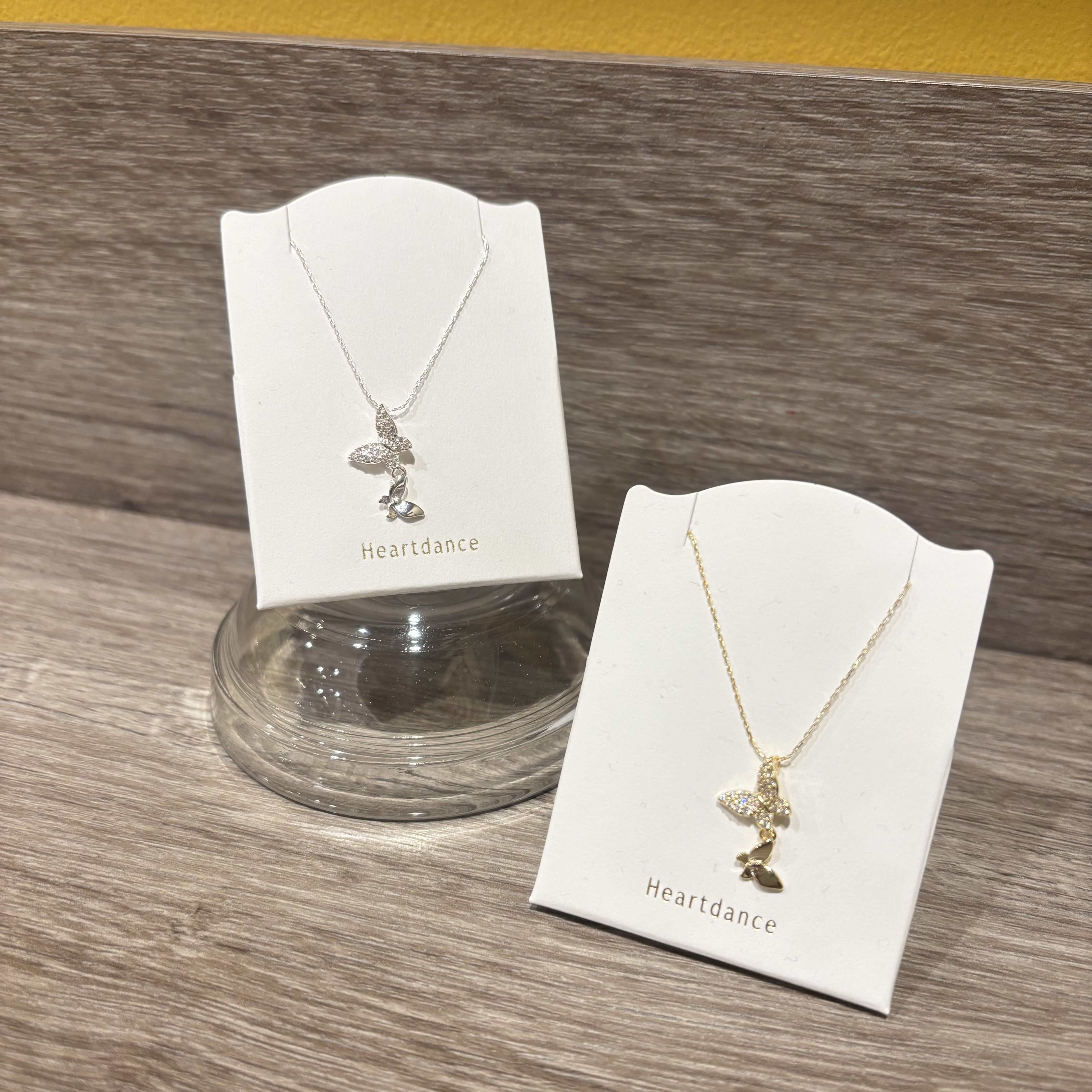 バタフライのモチーフに、小粒のストーンをぎっしりと敷き詰めたネックレスは、キラキラと華やかですが、小粒のストーンなので落ち着きのあるデザインになっており、普段使いもしやすいですよ♪