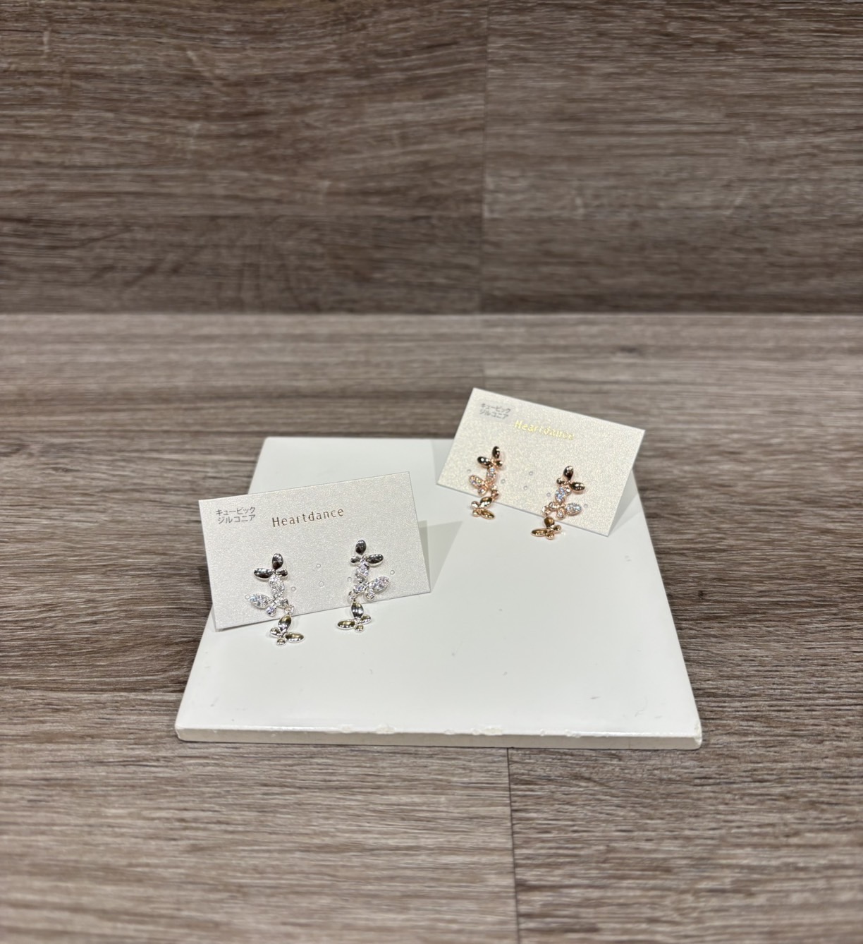 小さめなピアスですが、メタルの蝶の間にキラキラの蝶のモチーフがついていて、光の明るさによってキラキラ輝いて見える商品となっております☆