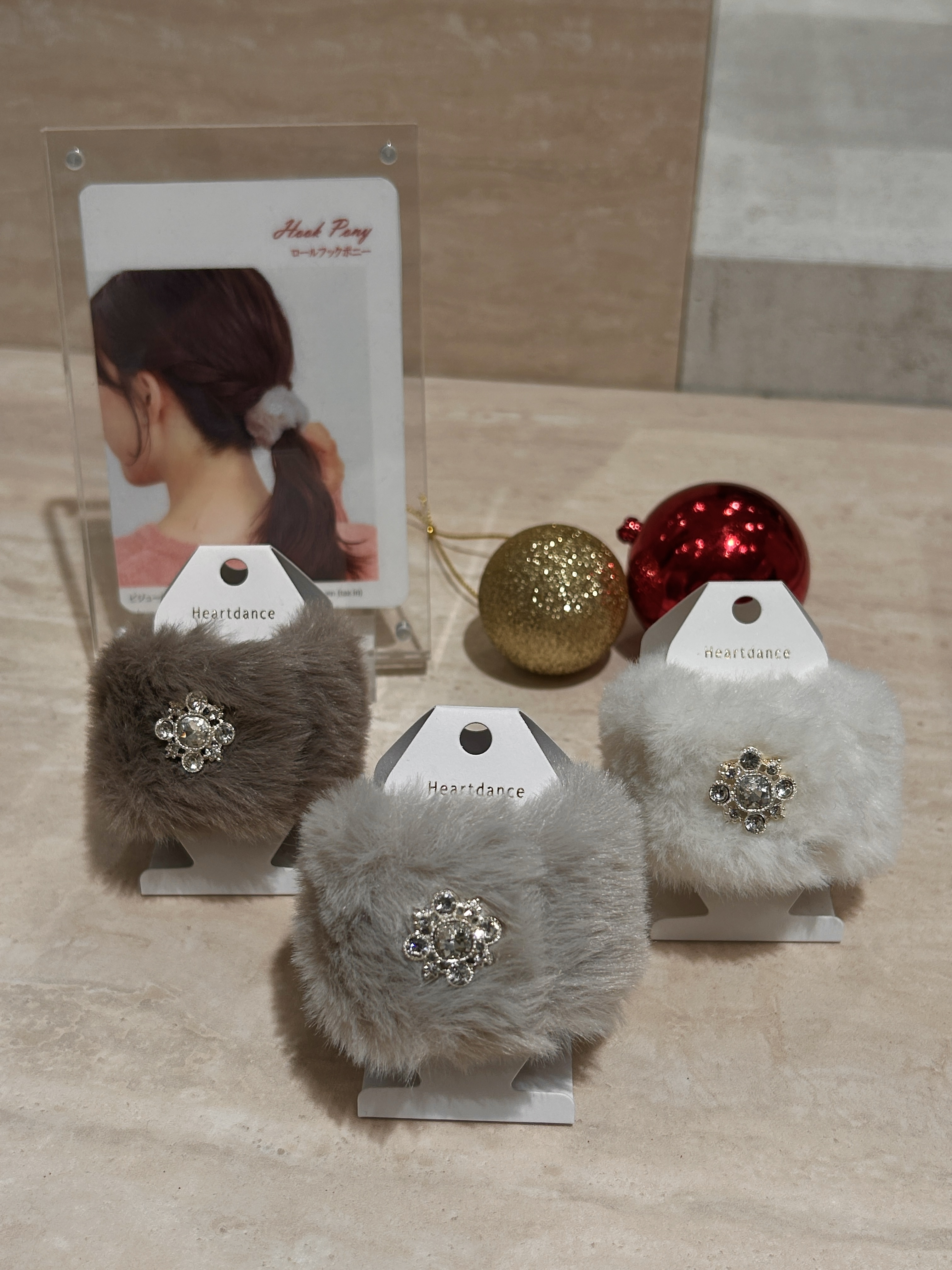 ファーにビジューの装飾が施されたフック型のヘアアクセサリーです🎀