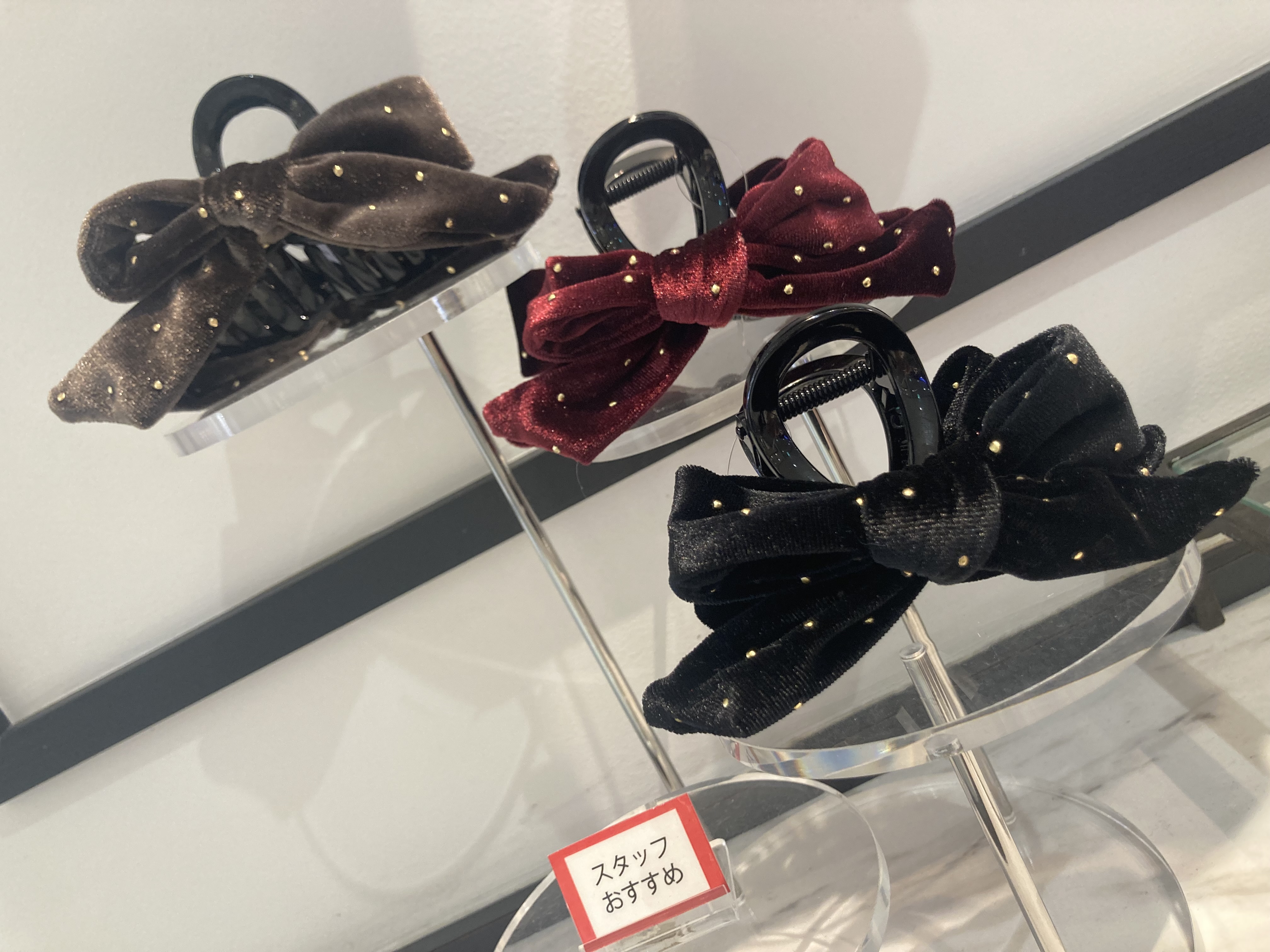 今回紹介する商品はドットベロアリボンバンスクリップです。