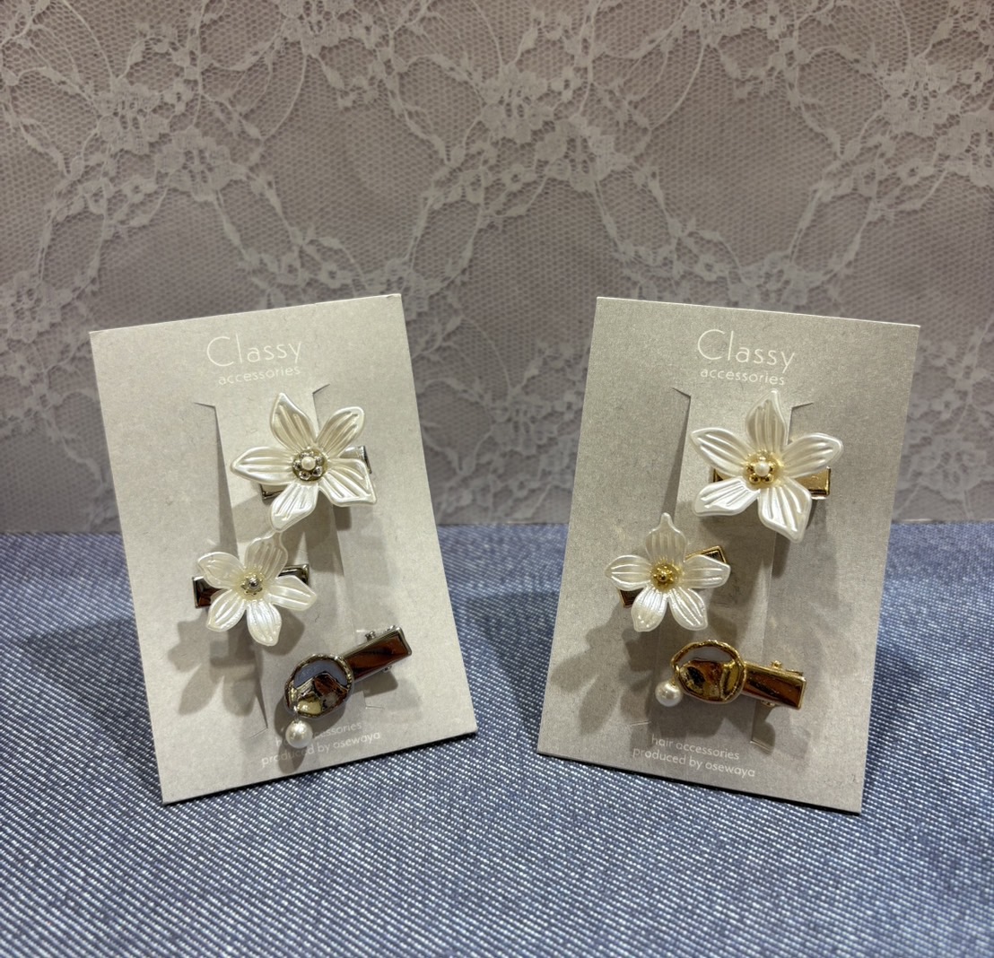 デザインがそれぞれ違う3ヘアクリップが 3個セットのこちら☆