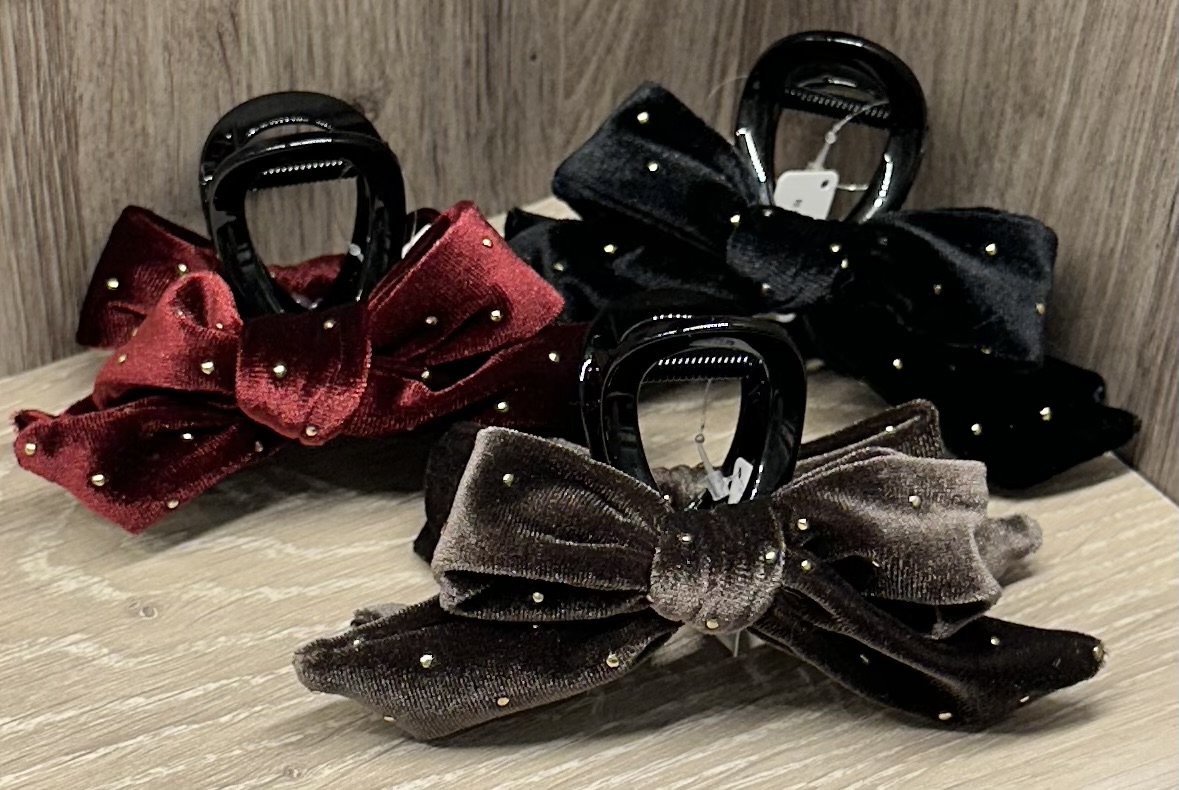 こちらの商品は、3色展開でベロア生地にゴールドのストーンがついたリボンの