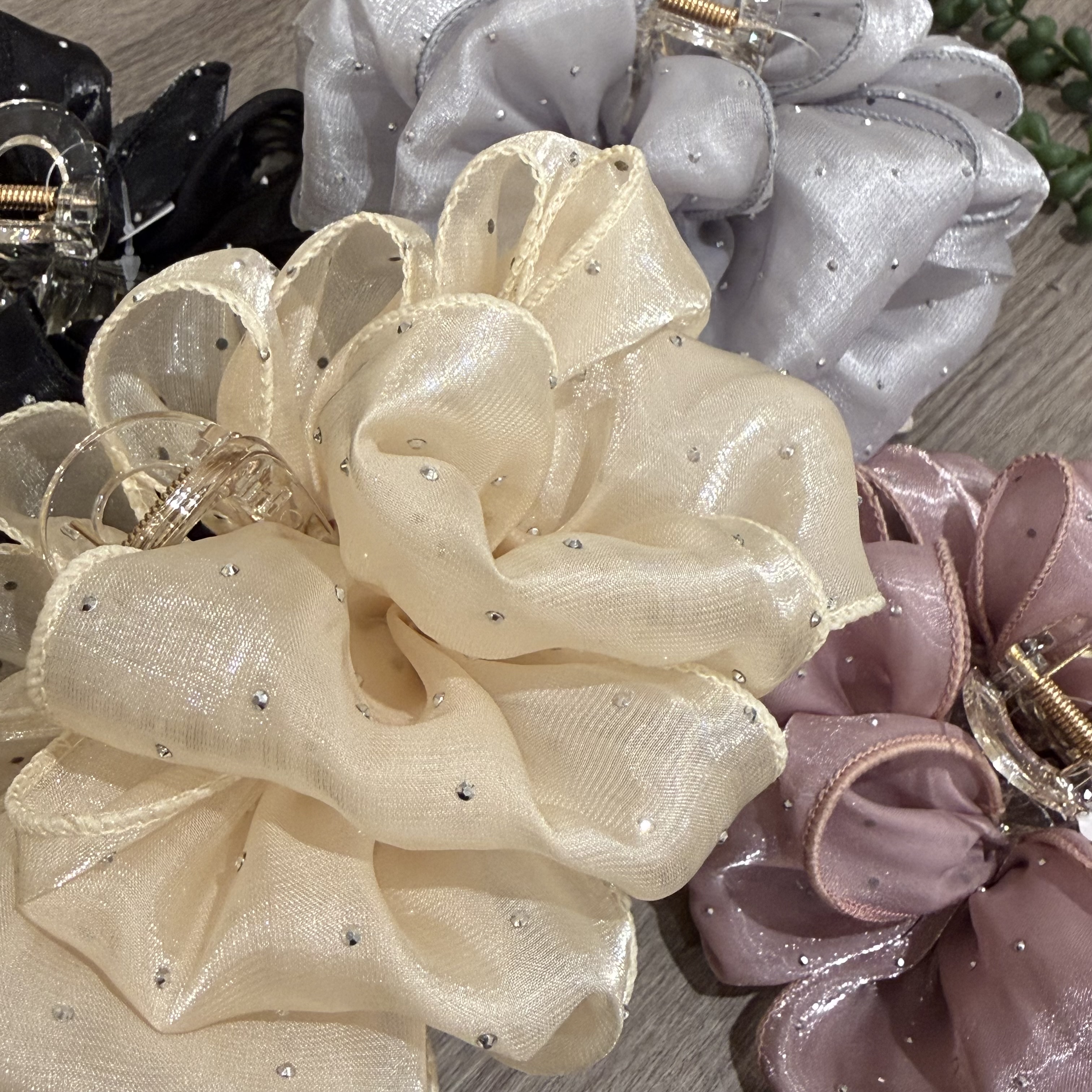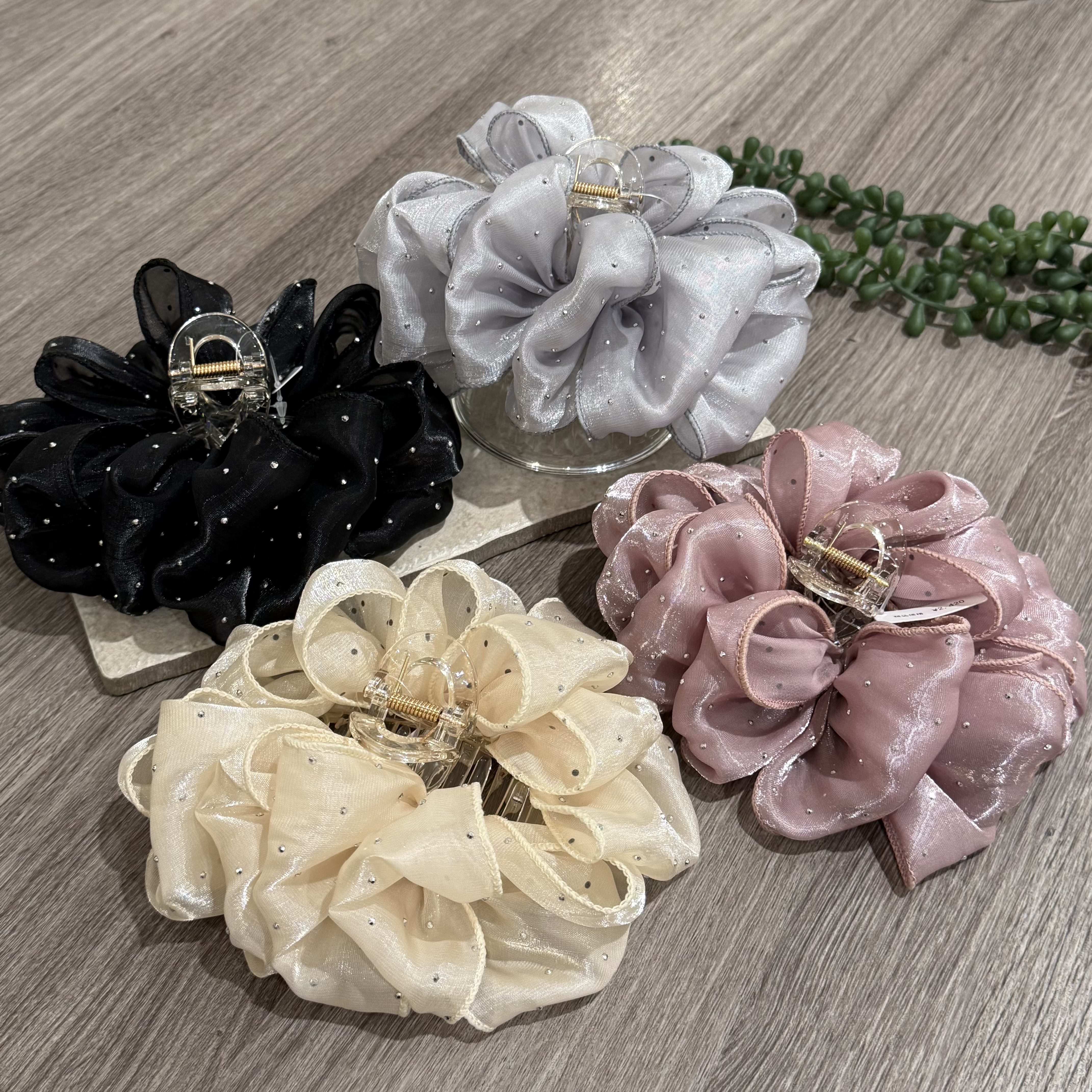 ハーフアップでも全体アップでも簡単に髪の毛をまとめることができます! 色は黒、アイボリー、ブルー、ピンクの4色展開です☁️