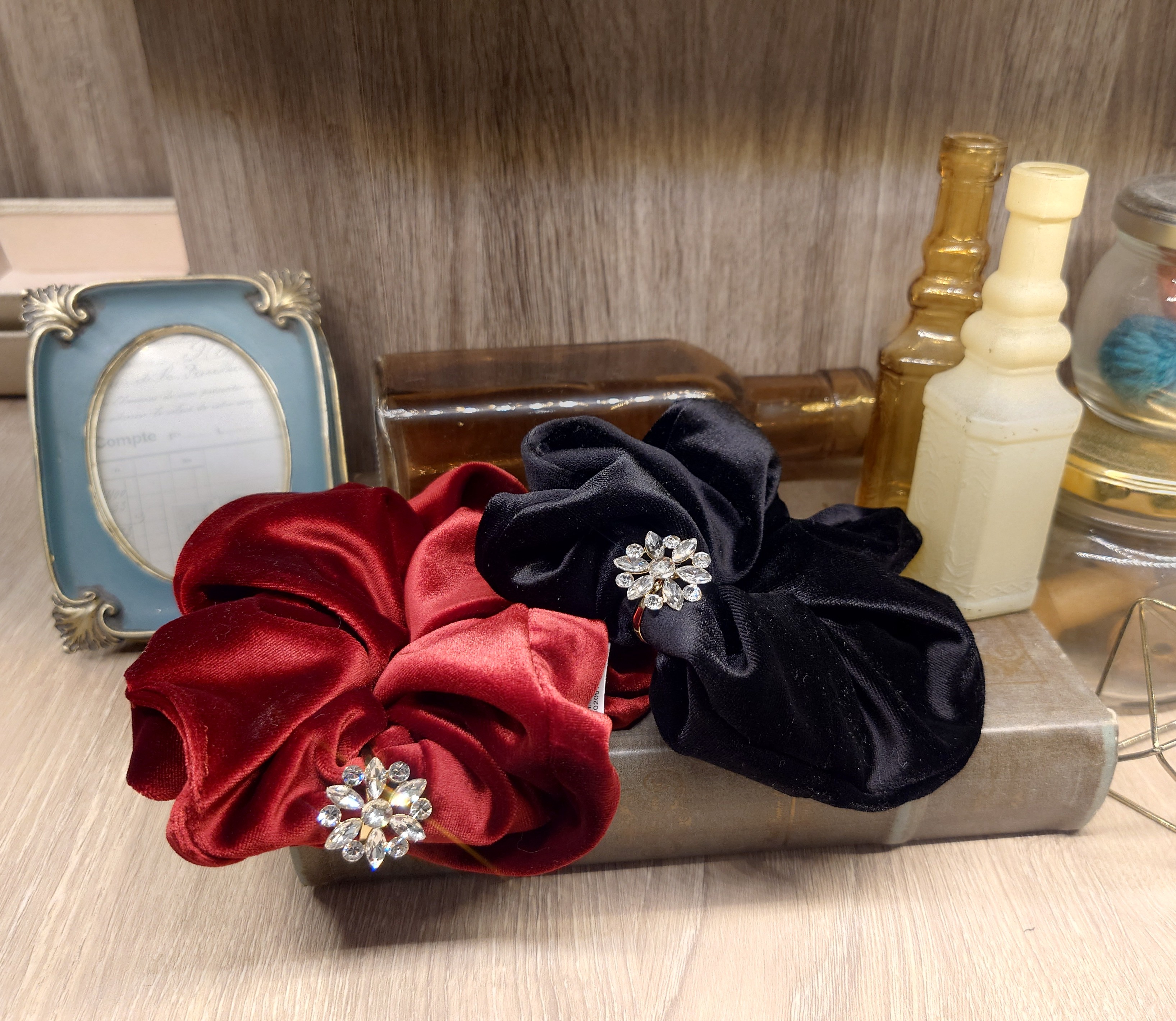 こちらはビジューがキラッと華やかなベロアシュシュになります♪