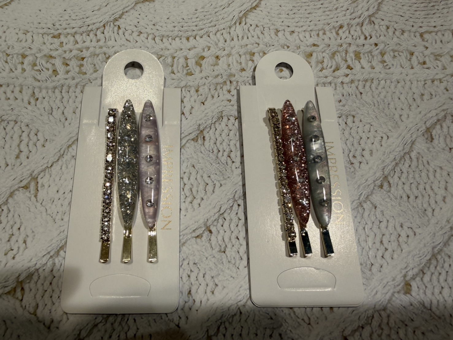 1、ストーンが目立って、とっても可愛い! 2、セットなので、重ね付けするとより素敵! 3、長さが短めなので、前髪にとめるのも使いやすい! 4、3色全て違うお色なので、組み合わせを考えるのも楽しい! 5、小さめだけど、ひとつでつけても存在感がある! 以上、おすすめポイントでございました> ₃ <