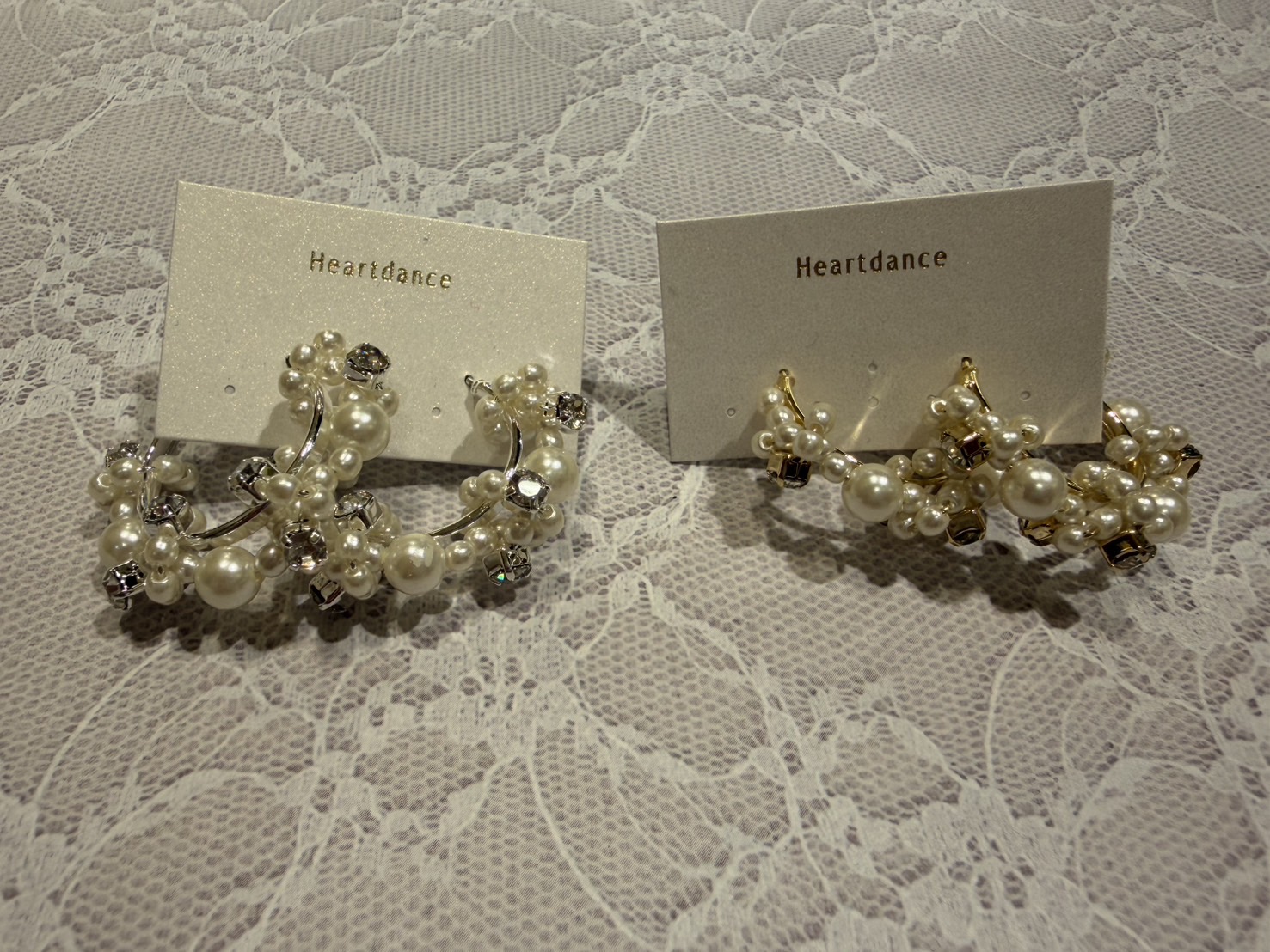 1、大きめのフープが主役級で、目立ってくれる! 2、細かいパールとストーン、そして大きいパールがとっても可愛い! 3、パーティー用や、特別な日にピッタリのデザイン! 4、アップヘアに合わせると、より特別に見える! 5、どちらのお色も、華やかでお洋服にも合わせやすい! 以上、おすすめポイントでございました(﹡ƠωƠ֦﹡)