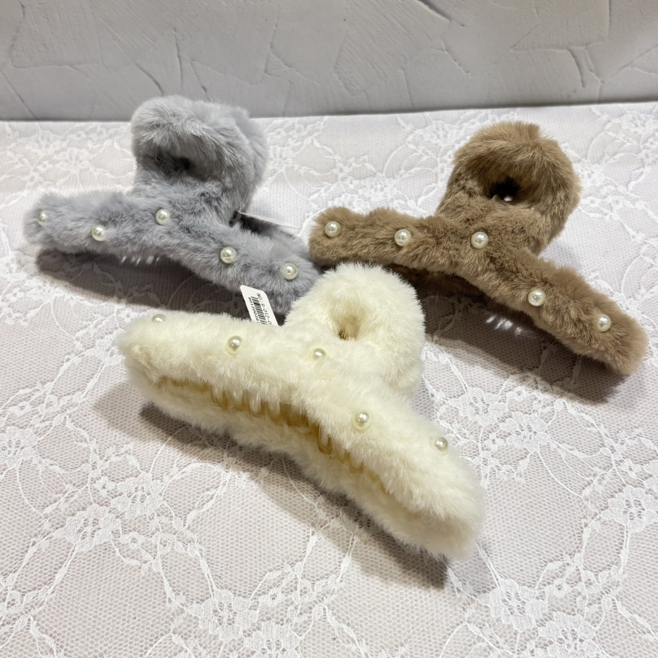ふわふわ×パールが可愛いこちらのクリップ。 柔らかいファーが冬らしい雰囲気をプラスしてすれて、一気に季節感が出ます! 全体に散りばめられた小さめパールがアクセントに◎ ガーリーすぎず品のある仕上がりになるので、デートやお出かけ、キレイめの服装にも合わせていただけます! カラーは3色展開です☆