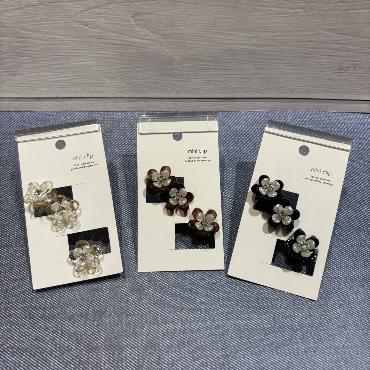 フラワーモチーフが可愛いこちらのミニクリップ。立体感のあるデザインで真ん中にはキラッとストーンがあしらわれており、小さめですが存在感バッチリです◎ 前髪や両サイド、後れ毛を留めたい時にちょうど良いサイズ感! カラーは使いやすい3色展開です☆