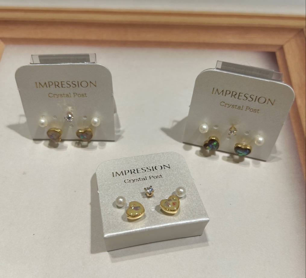 1、ぷっくりハートの形が、意外とめずらしい! 2、ハートの中のお色もキラキラで、女子がみんな好きなラメ感! 3、セットでパールもついているので、少し大人っぽさも出せる! 4、樹脂のポストなので、アレルギーにも対応していて、肌に優しい! 5、どのお色も、流行りのぷくぷくシールみたいでとっても可愛い!