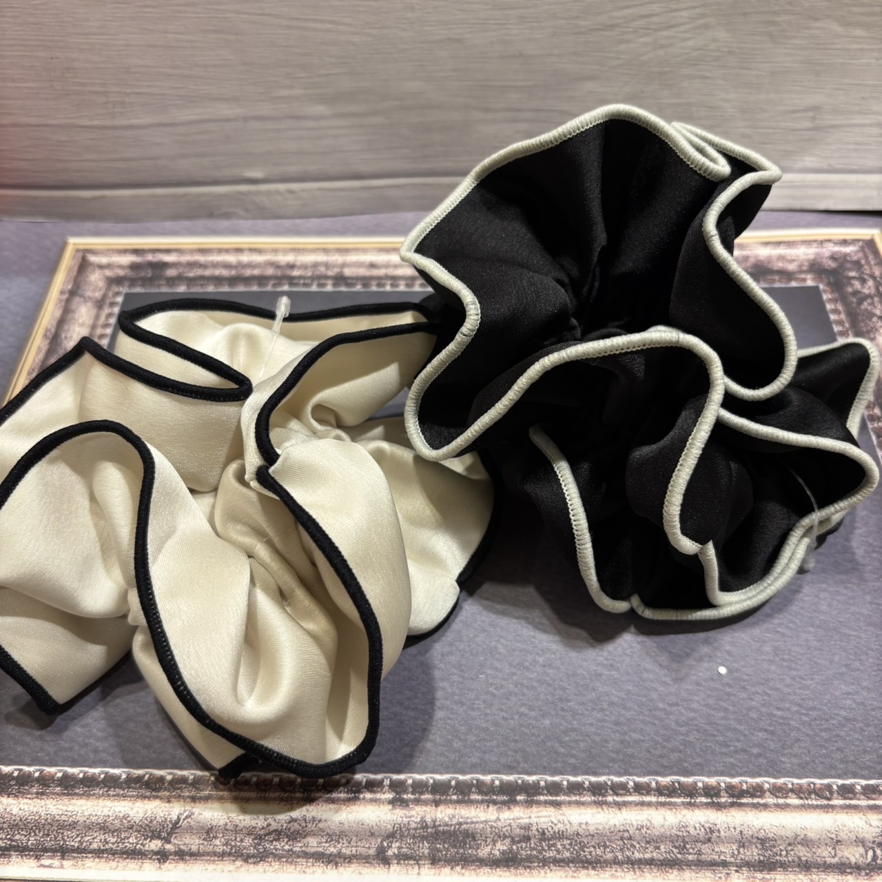 バイカラーデザインが大人っぽいこちらのシュシュ。縁どりの配色が甘すぎず上品な印象に! ふんわりボリュームで華やかに魅せてくれて、まとめ髪が一気にきちんと感+オシャレ感がup!! カラーはベーシックで使いやすい2色展開です☆