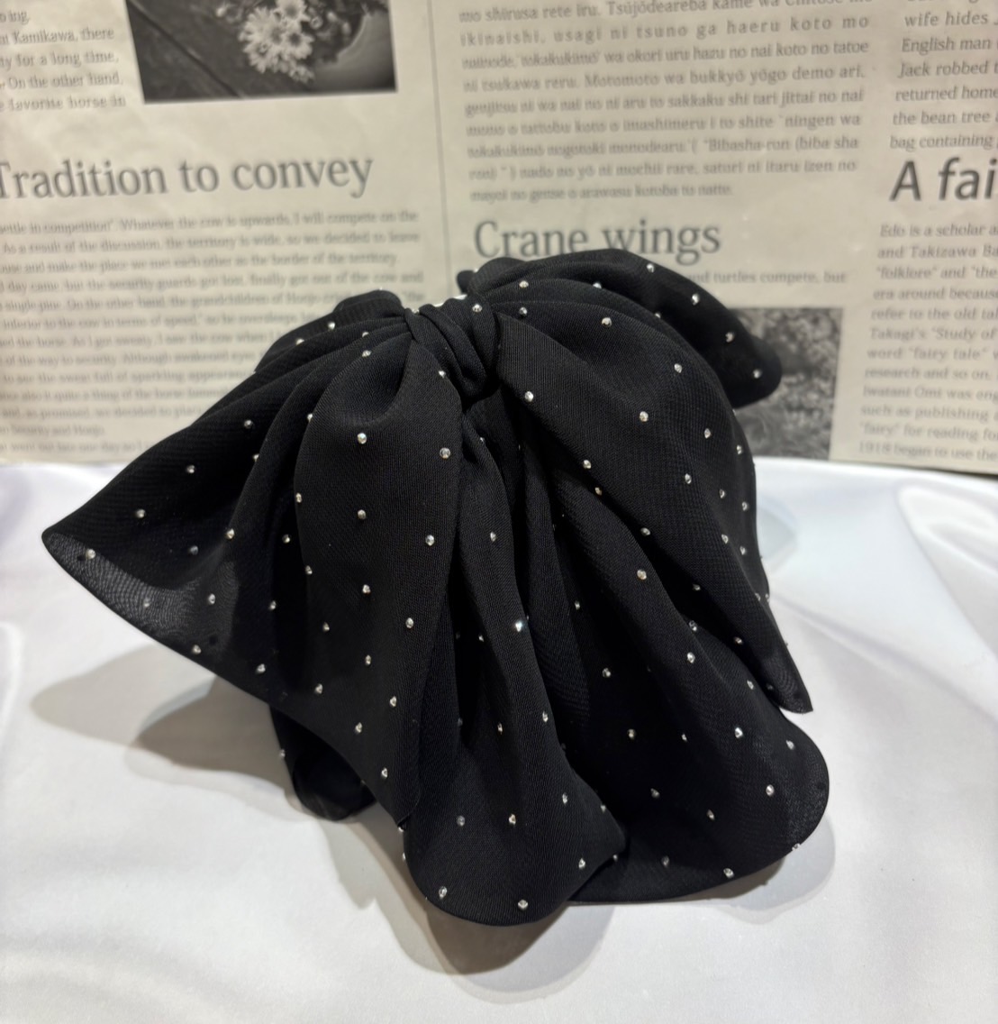 ピンドットがイマドキなこちら。 ボリューム感のあるリボンデザインで、 なんとバンスクリップでございます!!!