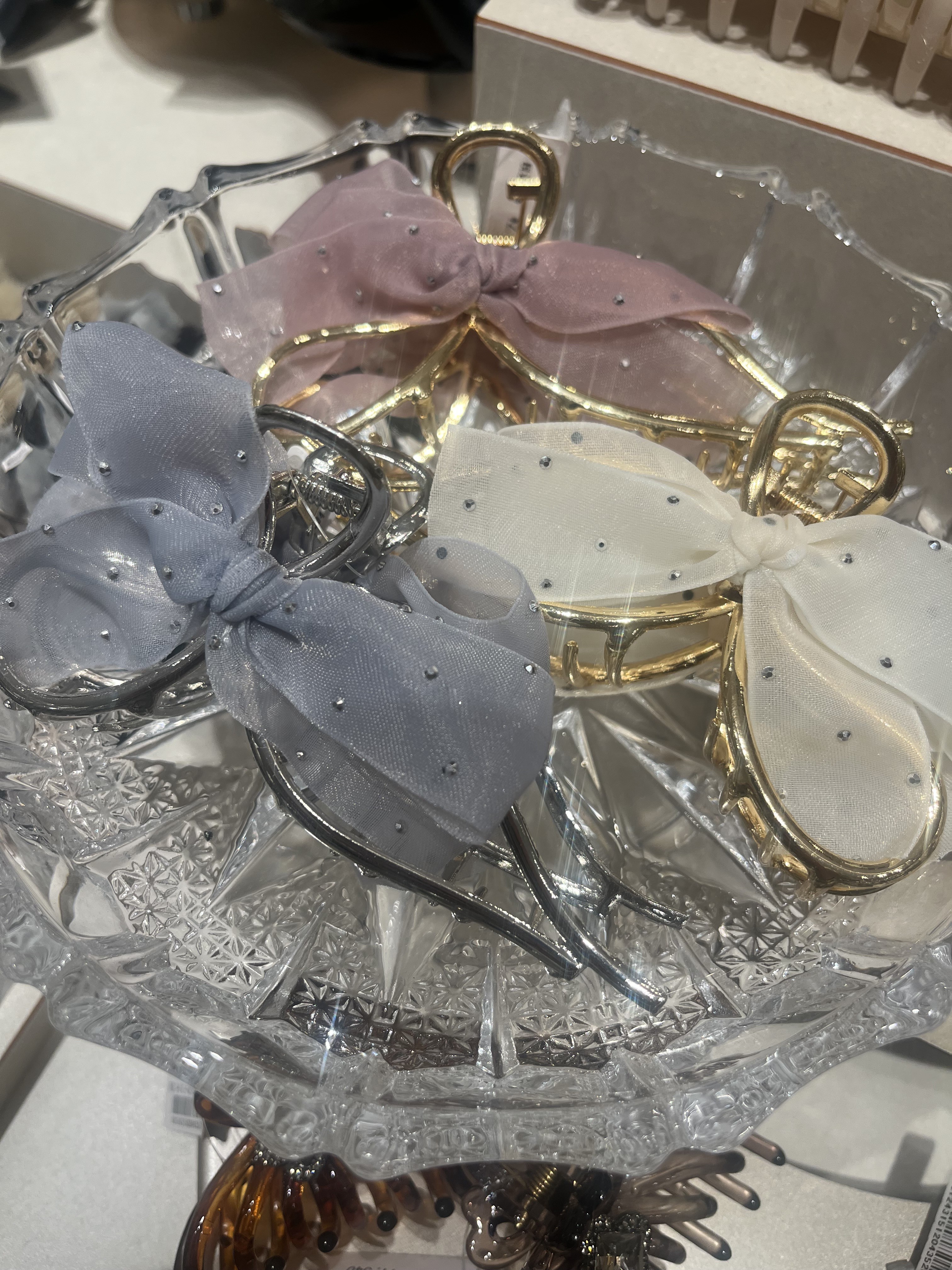 メタルバンスですが軽さがありつけた時にリボンのメタル部分のシルエットがオシャレなアイテムです!!