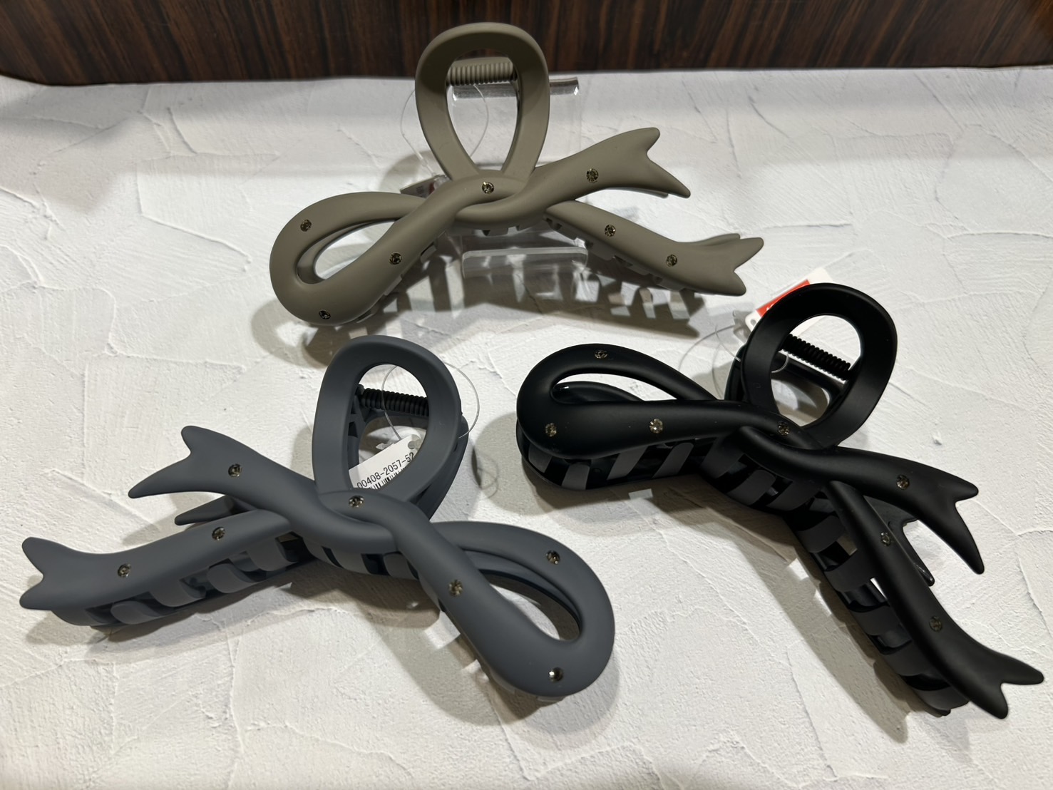 マットカラーで、片結び風のデザインが大人可愛いバンスクリップです!