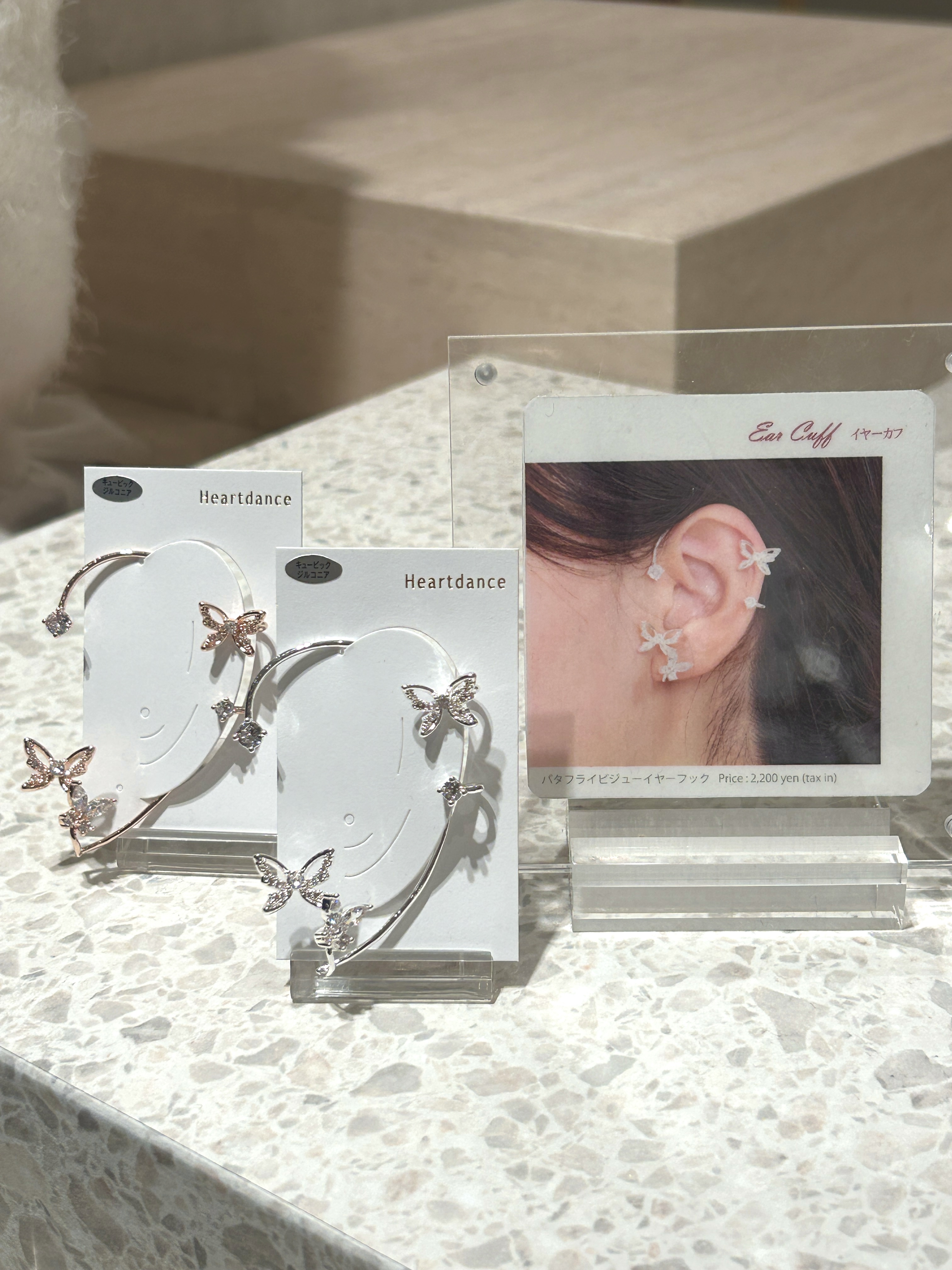 こちらのアイテムは、バタフライのモチーフとビジューで華やかな印象のイヤーフックとなっております✨