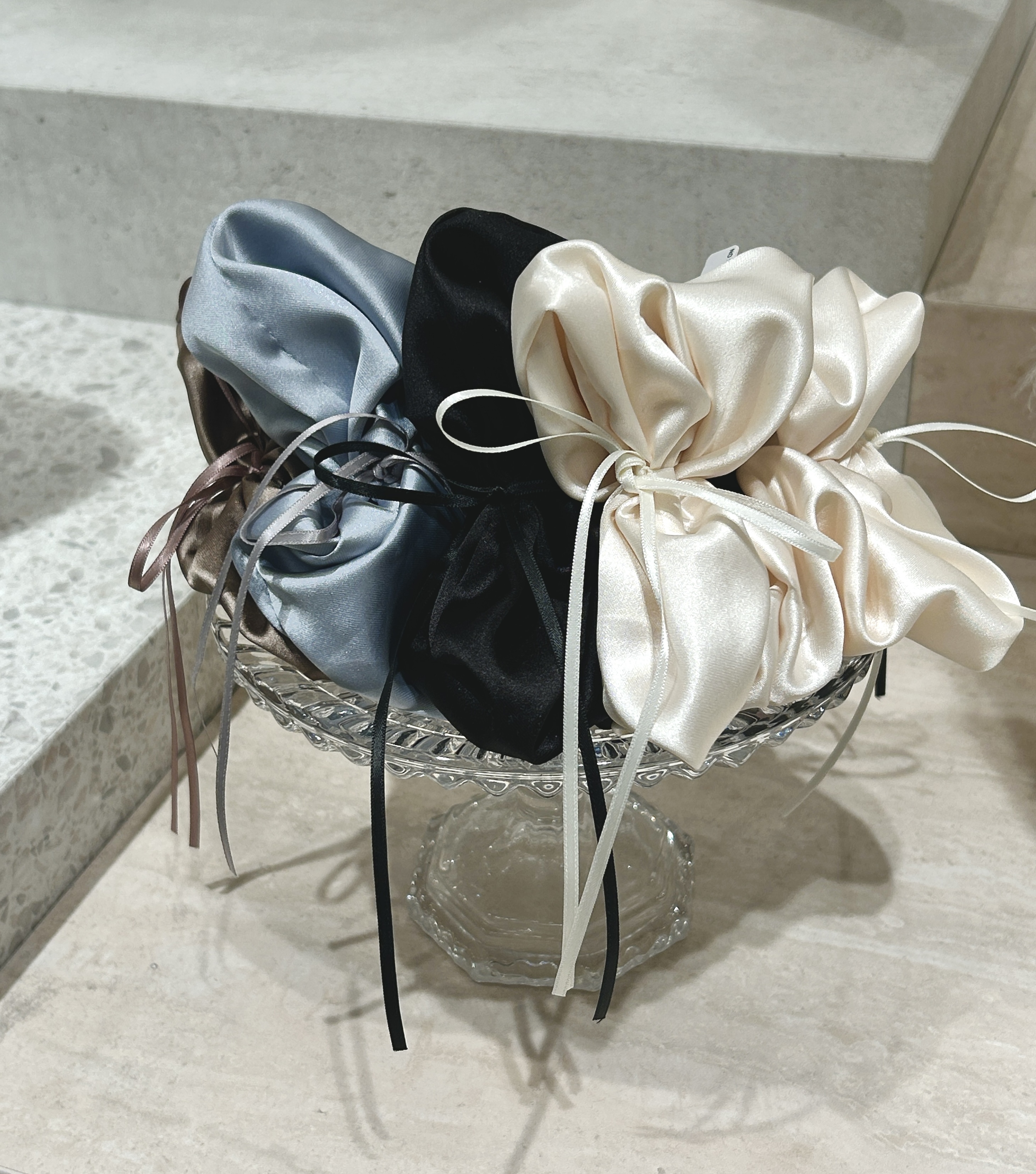 サテン素材のシュシュと、揺れるリボンの相性バッチリのヘアアイテムとなっております🙆🏻♀️