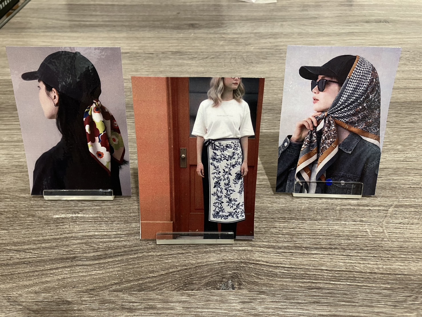 一般的なものよりひと回り大きめなスカーフなので 普通にスカーフとしてはもちろん ビスチェ風にしてみたり キャップにリボンとして付けたり他にも色々アレンジができますよෆ