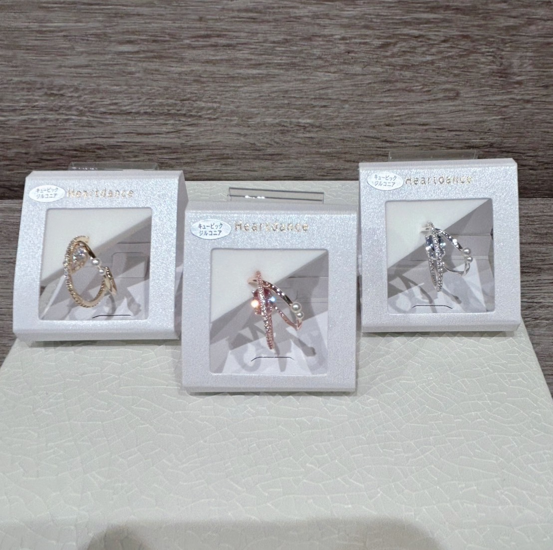 中心にはメタルに合わせた淡いカラーストーンがついていて 華奢なラインでも存在感のあるデザインに♡