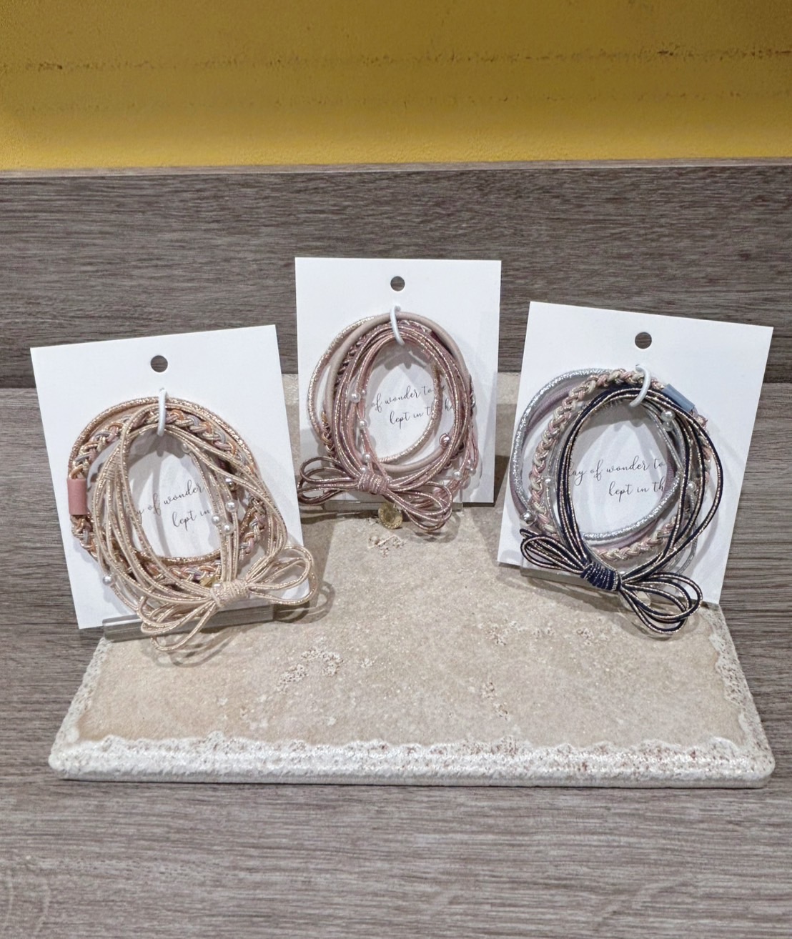 5本全てが違うデザインなのでそのままはもちろん、 数本重ねて結ぶのも雰囲気が変わっておすすめ✨