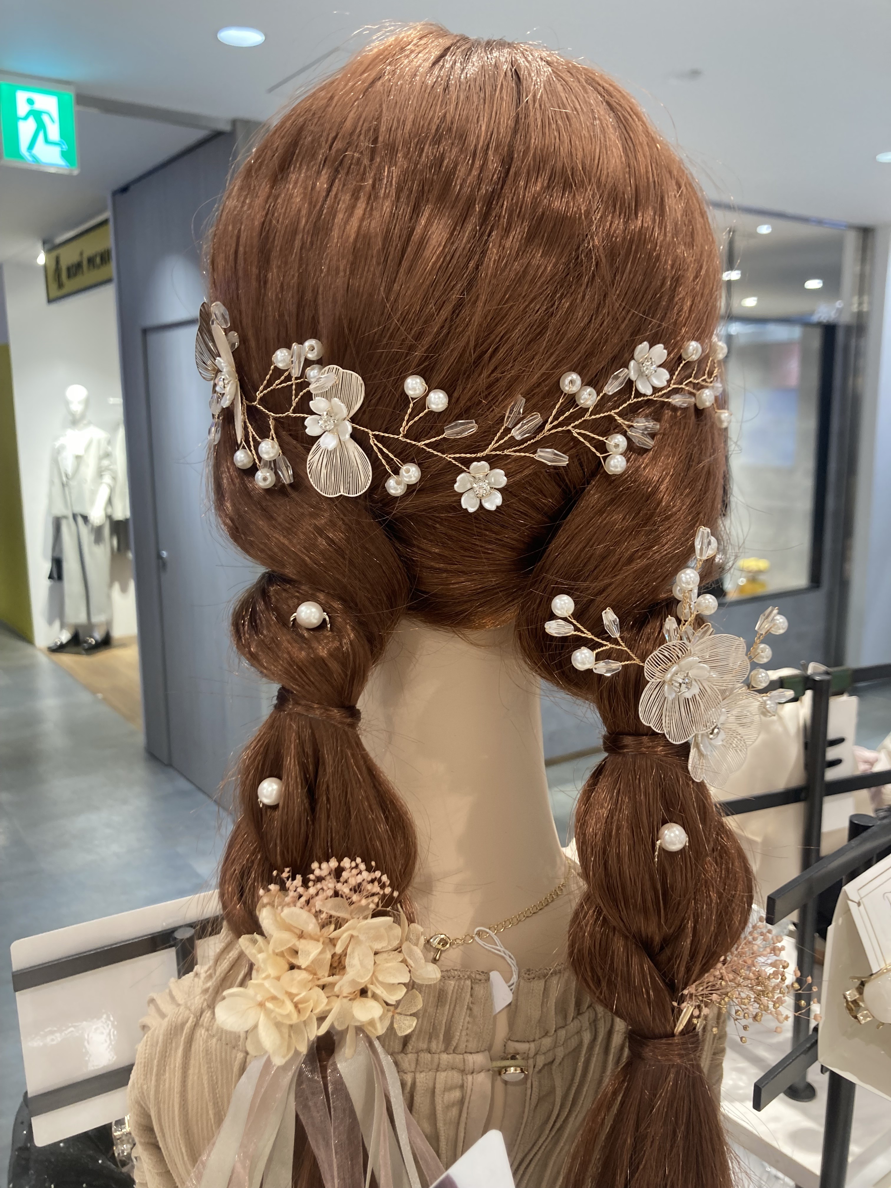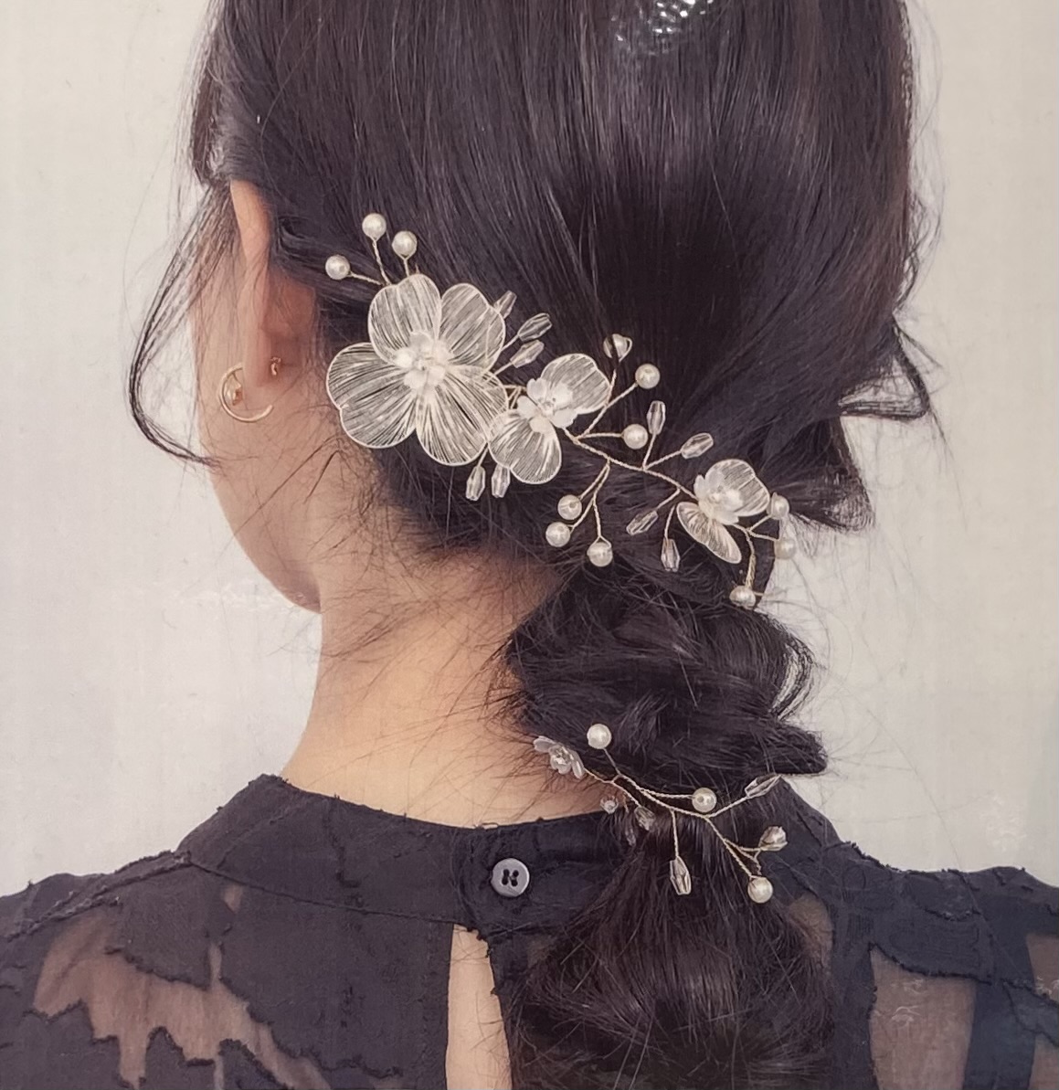 ヘアピンになってるのでヘアアレンジしてつけるだけ!