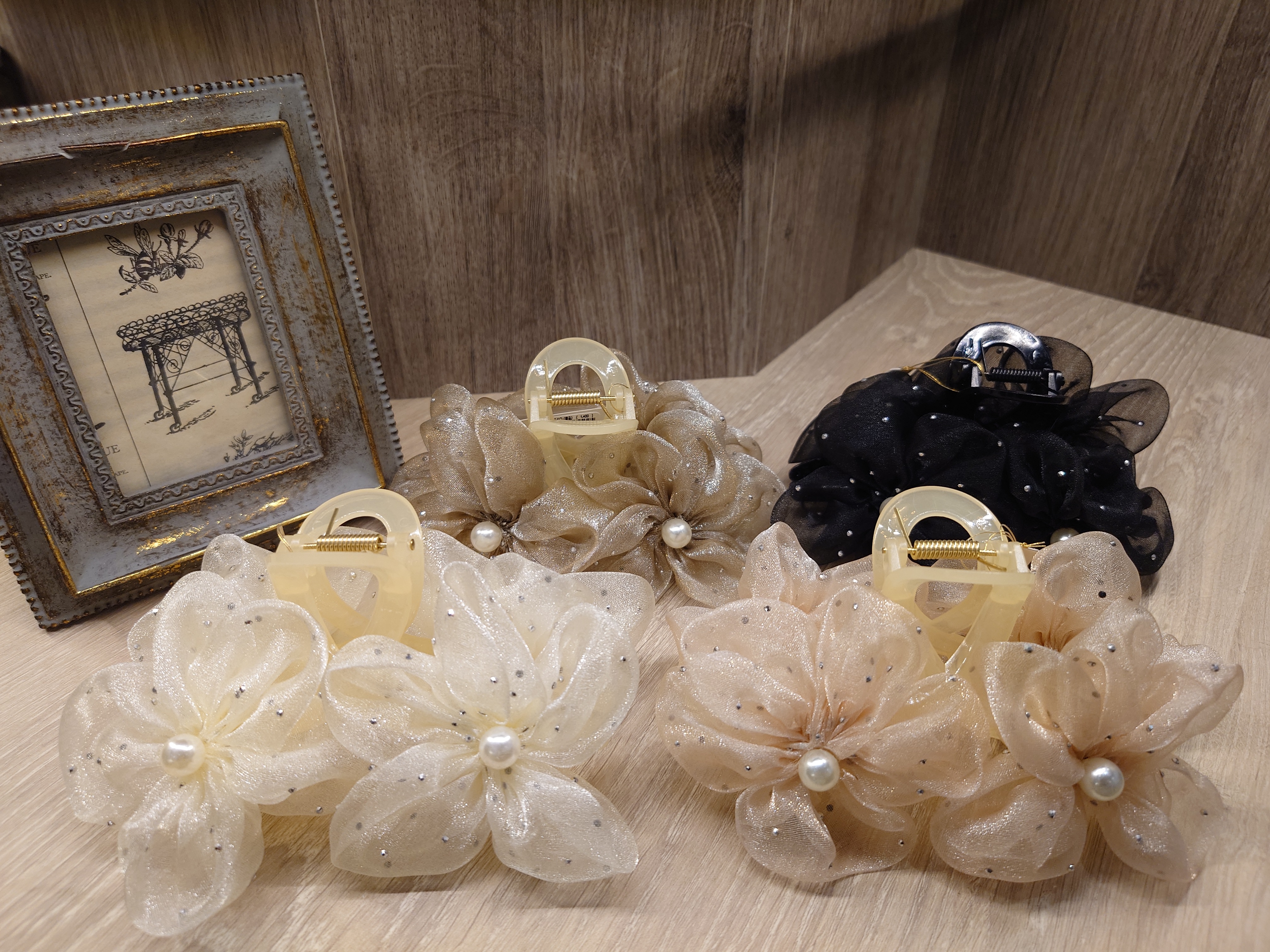 こちらはお花のデザインが可愛らしく珍しいバンスクリップです☆