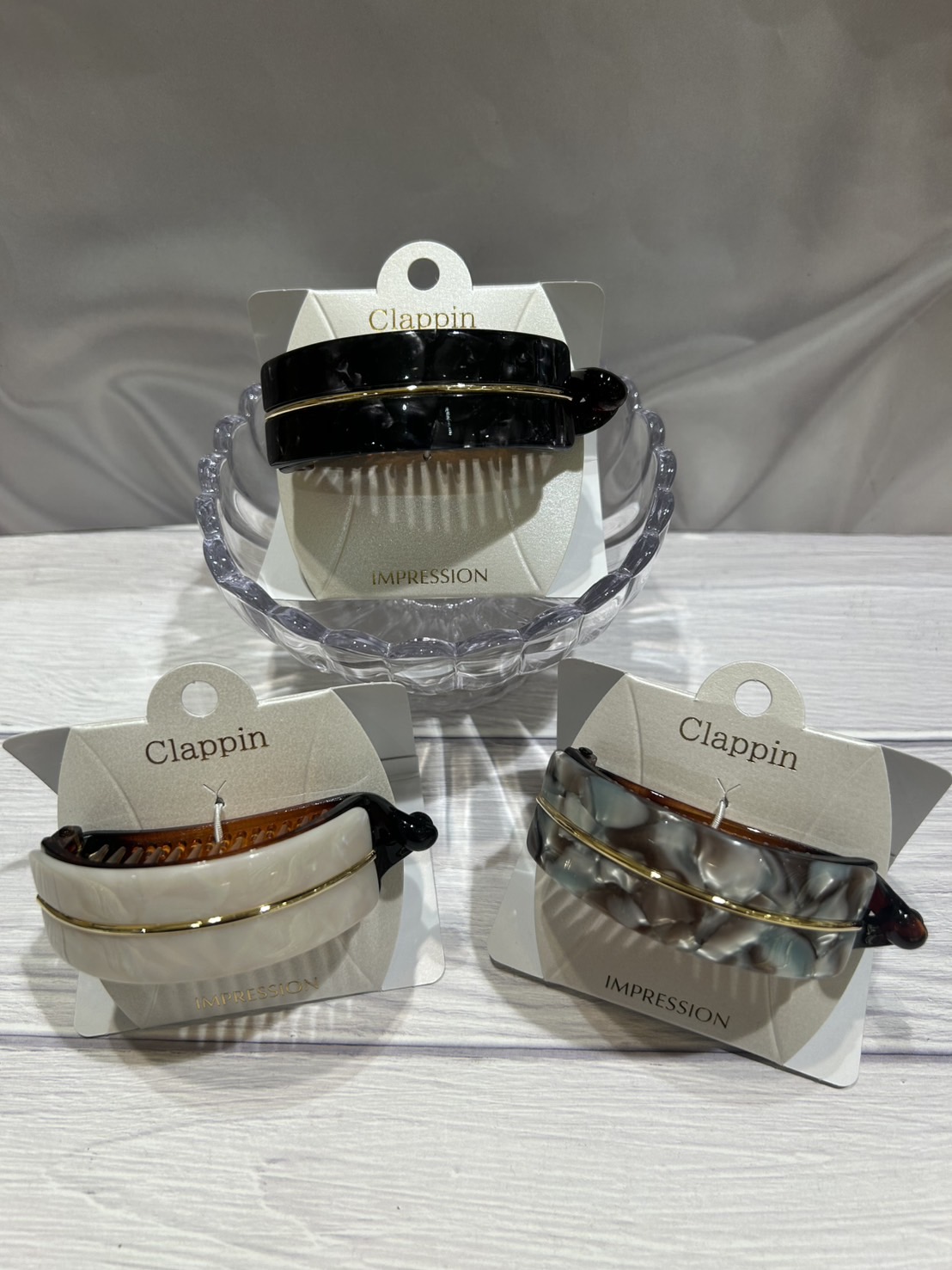 かまぼこ型のクリップです! 束ねた髪を挟んだら、つまみをひねって留めるだけですのお手軽まとめ髪アイテムです! 髪に結び跡も付きにくいのでお仕事にもおすすめです♡