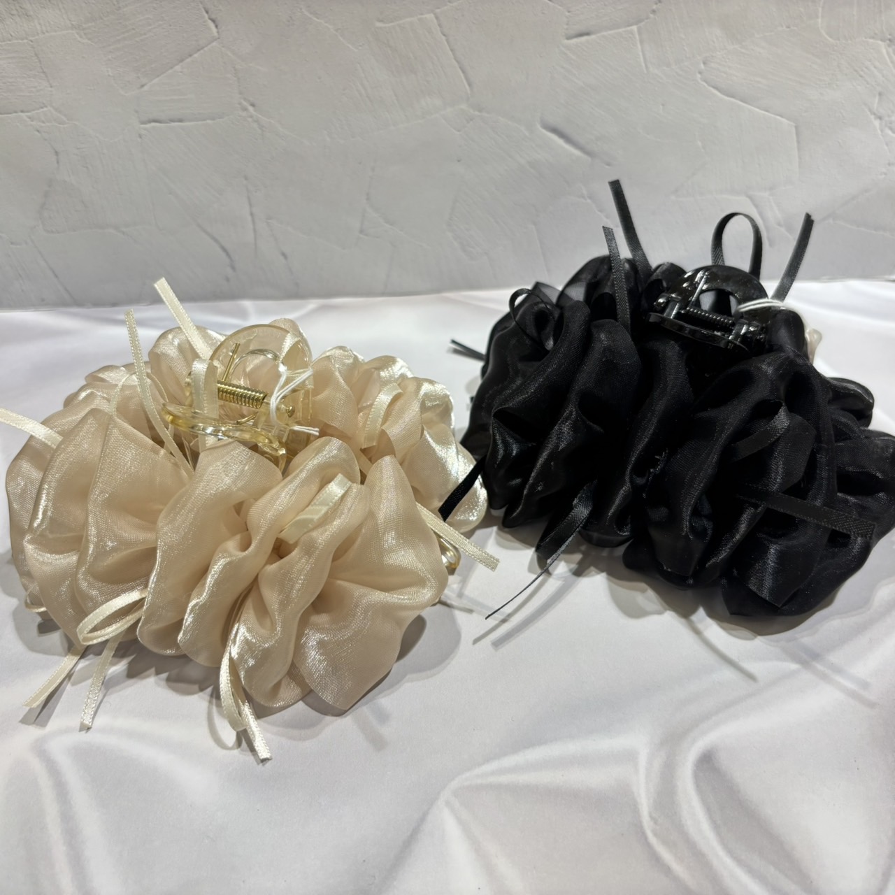 本日は!!新作のバンスクリップをご紹介致します! サテンリボンがポイントのこちらのバンスクリップ。ふんわりとボリュームのあるデザインで、後ろ姿を華やかにしてくれます! 透け感のあるオーガンジー素材なので重すぎず、暖かくなってくるこれからの時期にもピッタリです◎ 手のひらサイズで大きすぎず、ボブの方も使いやすいサイズ感です。 カラーは使いやすい2色展開☆