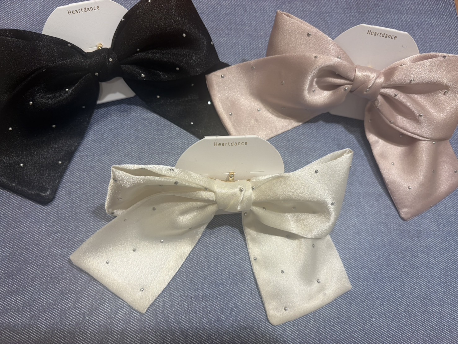 1、リボンにストーンが付いていて、王道可愛い! 2、オーソドックスな形なので、合わせやすさもバッチリ! 3、ストーンが小さめなので、色んなシーンで使える優秀アイテム! 4、白や黒はもちろん、ピンクの色味も落ち着いていて年代問わず使えるのが嬉しい! 5、大きすぎず、小さすぎず、使いやすいサイズ感も素敵!