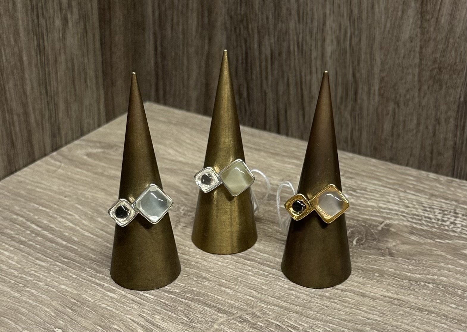 こちらは、3色展開のひし形デザインのリングになります!