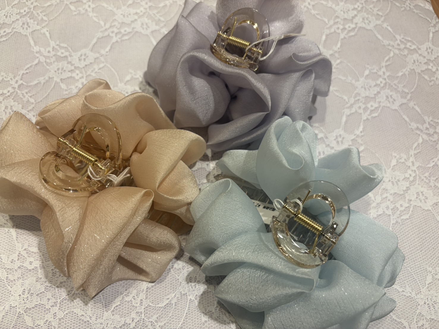 1、春らしいお色が特徴的で、人と被らない! 2、ハーフアップに使うと、より可愛い大きさ! 3、色が鮮やかなので、シンプルなフリフリのデザインがちょうどいい甘さ! 4、これからの時期にピッタリの素材で、光の加減で少しキラキラして見える! 5、春夏につけると、映えて見える最強アイテム!