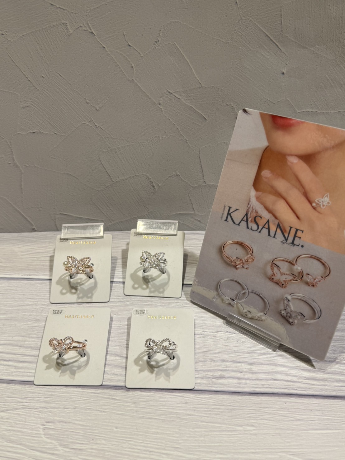 KASANE.シリーズのリング2種類です! どちらも、バラバラで使っていただいても重ねて使っていただいても可愛いアイテムとなっています。 また、バタフライデザインのリングは透かし模様とパールがきらめきを運んでくれます☆ リボンデザインのリングは、細身のラインでバラバラにすると「リボン」と「ハート」のリングとしても着用が可能となっている付け回ししやすいセットリングとなっています! 是非、店頭にてご覧ください!