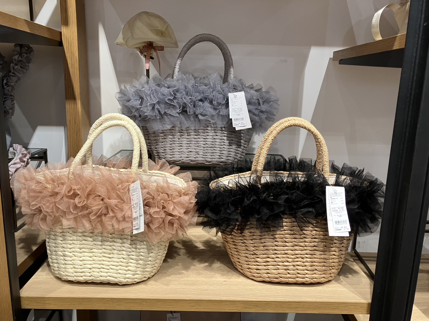 毎年大人気のカゴバッグが今年も入荷いたしました・.。*・.。* フリルがとっても可愛くシンプルなお洋服のアクセントになりますね·͜·ᰔᩚ