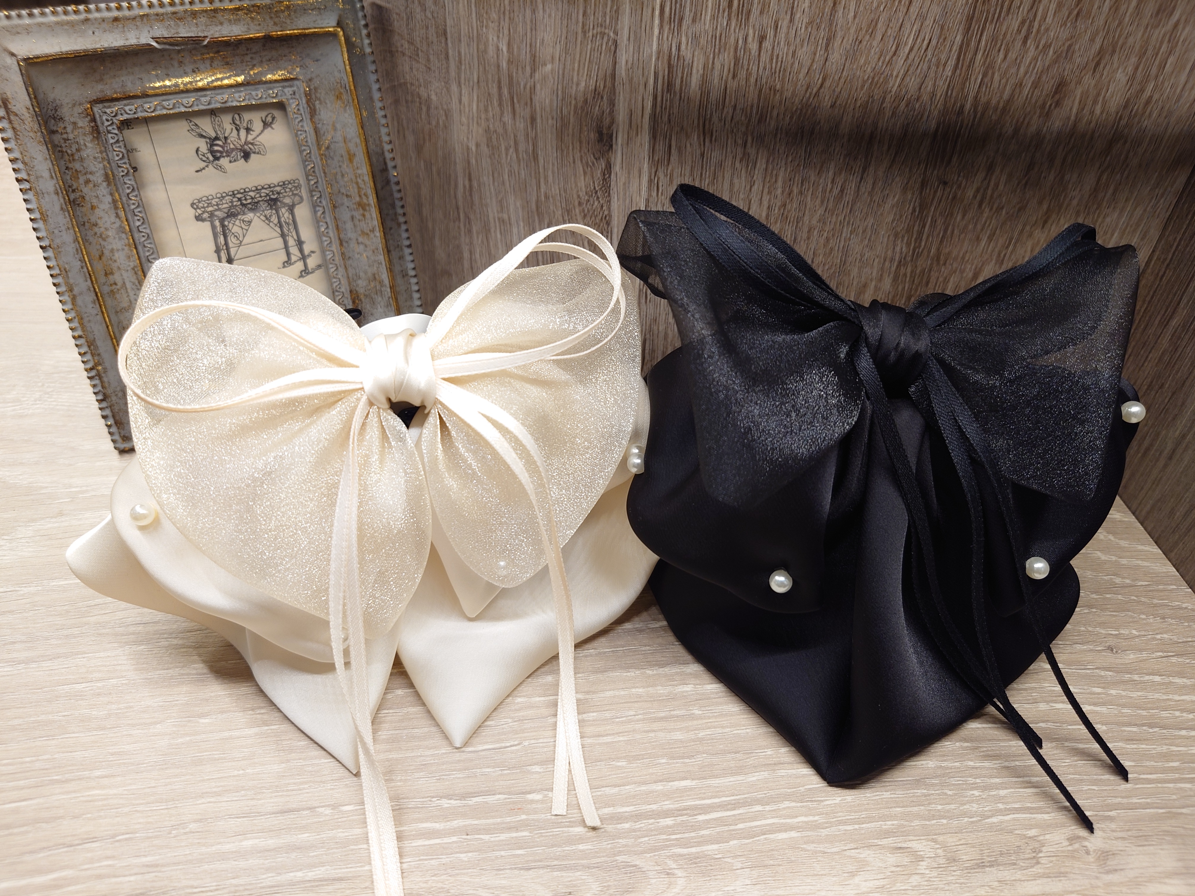 こちらはリボンのボリューム感とパールの装飾が可愛らしい