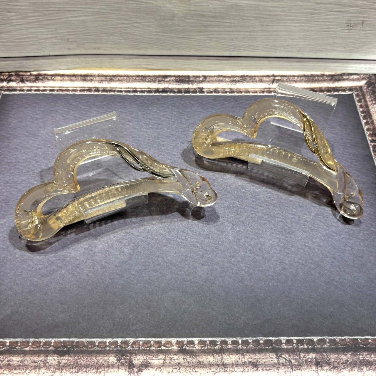 クリア素材が涼しげなこちらのバナナクリップ。 ハートモチーフですが、クリア×ニュアンスメタルで甘すぎず、大人可愛い印象に♡ サイズ感も小さすぎず簡単にまとまり、外しても髪に跡がつきづらいのがバナナクリップのおすすめポイントです◎ カラーはメタル部分がシルバー、ゴールドの2色展開です!