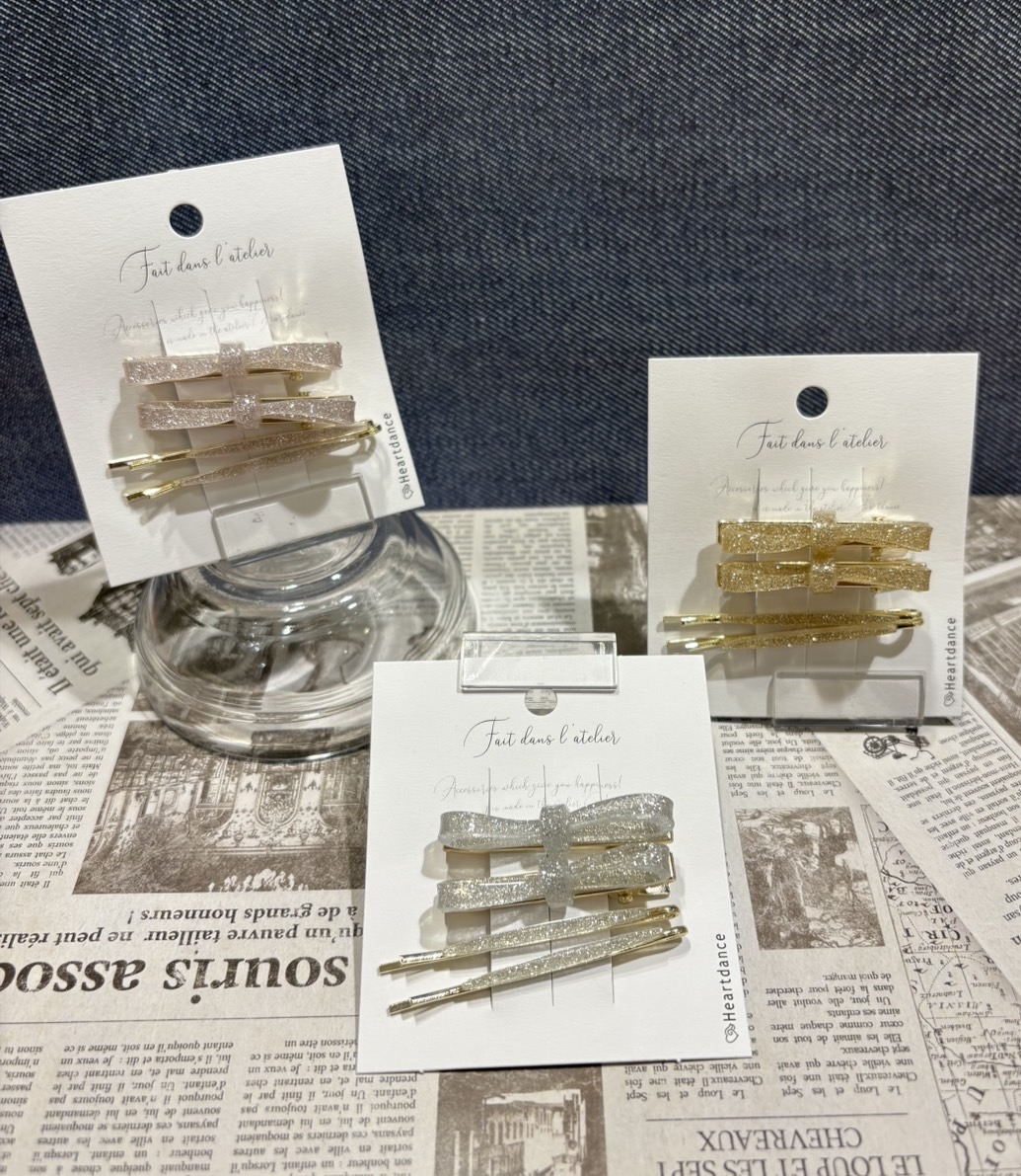 本日は! そんなお花見コーデにも可愛い 新作リボンクリップ&ラメピンのセットの ご紹介です。