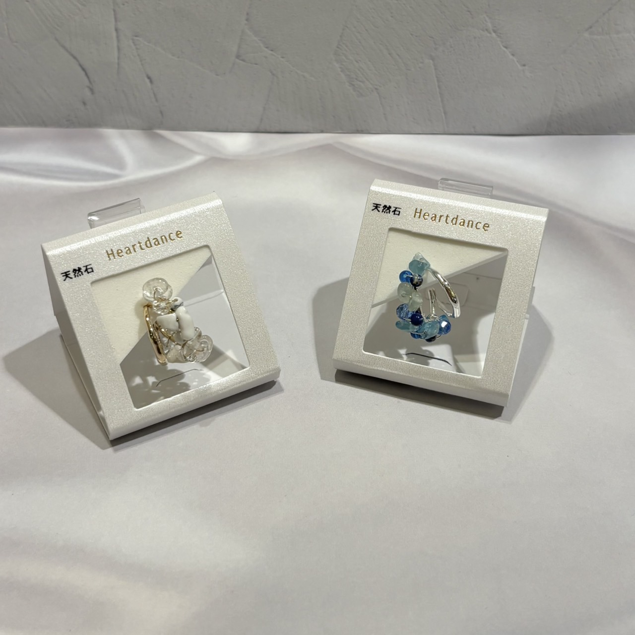 メタル×天然石でできたこちらのイヤカフ。 白は水晶・ハウライト、ブルーはアベンチュリン・ラピスラズリ・アパタイトと、様々な天然石をMIXして作られております! メタルと天然石は接着されているので、ひとつ付けるだけで2連風でオシャレ見え◎ ピアスやイヤリングと合わせて付けていただくのもおすすめです! カラーは春夏にぴったりの涼しげな2色展開でご用意しております☆