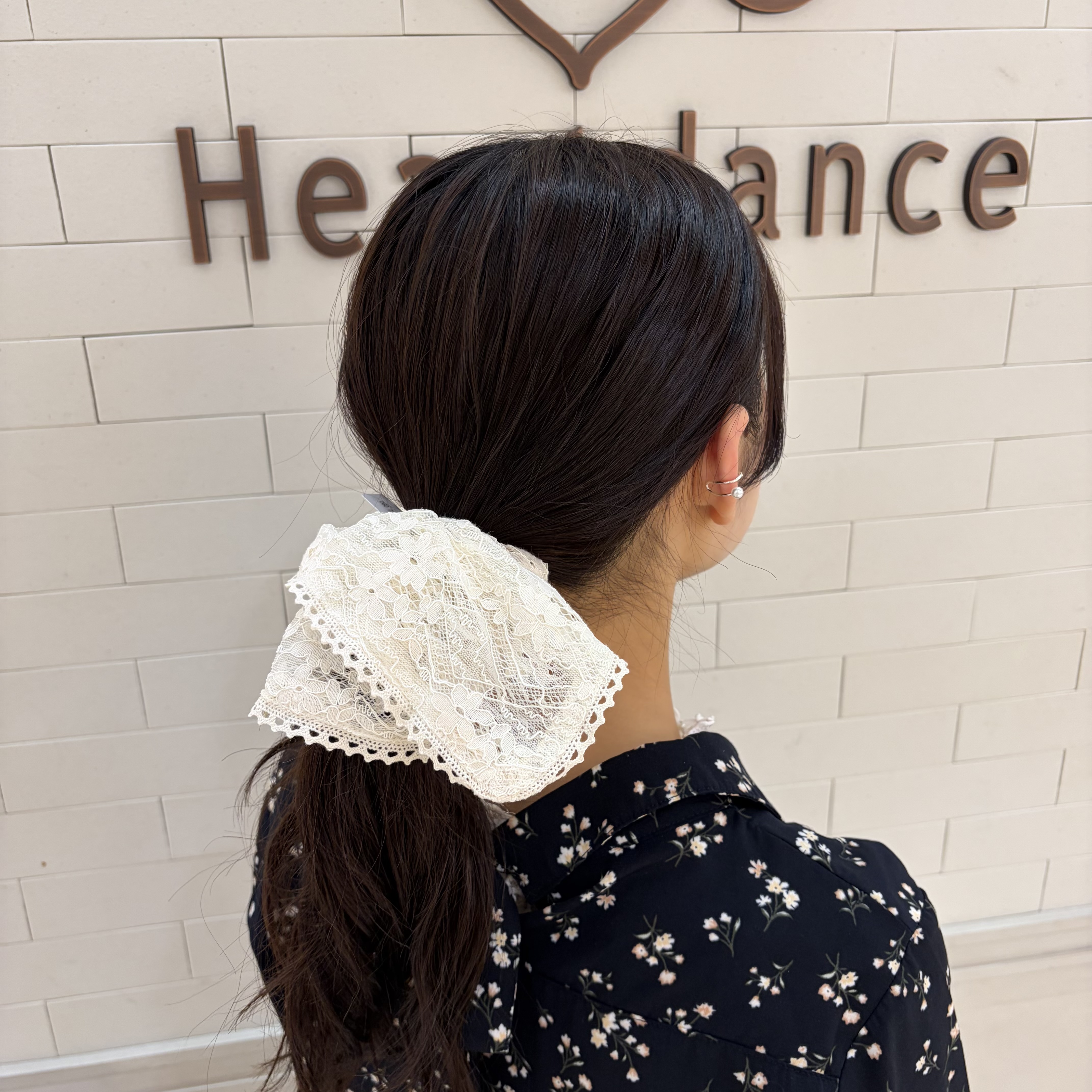こちらのアイテムは、他のシュシュとは違いドレスのスカートのようにふんわりとしたデザインになっております👗