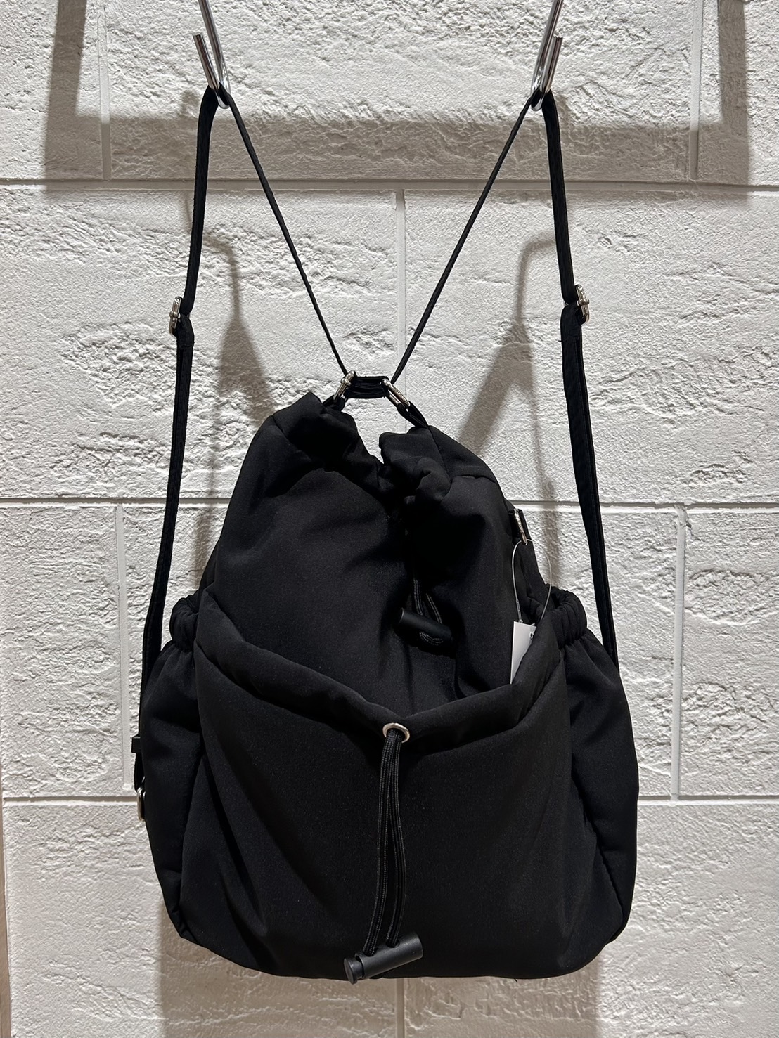 こちらはショルダーバッグとリュックの2wayでお使いいただけるアイテムとなっております♥️ 左右の持ち手を引っ張って頂くと、簡単にリュックになるので気分や服装によって使い分けができます♡.·*. ドロスト仕様なのでシルエットも変えることができます!外ポケットやサイドにもポケットがあるので収納力も抜群です✧︎*。