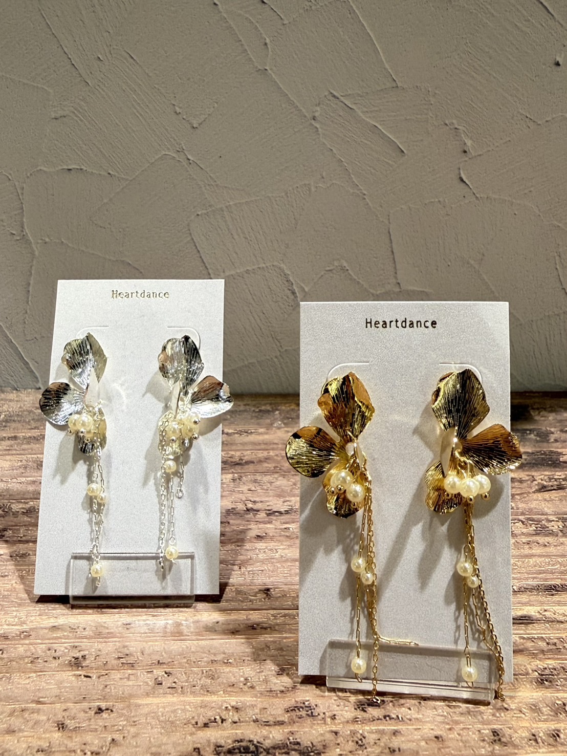 動きのある花びらがイチオシのピアスです♪ また、中心部分とお花の下にもパールが付いていて揺れるのが更に可愛い!!アイテムとなっています(⌯’ᵕ’⌯)´- カラー展開は、2色ご用意です! 39720-1225 メタルフラワーパールチェーンピアス ¥2,310(税込) ハートダンスでは、新着アイテム多数入荷しております! スタッフ一同、皆様のご来店お待ちしております。