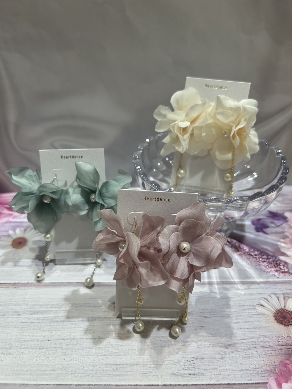 お花が目を惹くピアスです! パールとの組み合わせで上品さがプラスされ、より華やかな印象に♡
