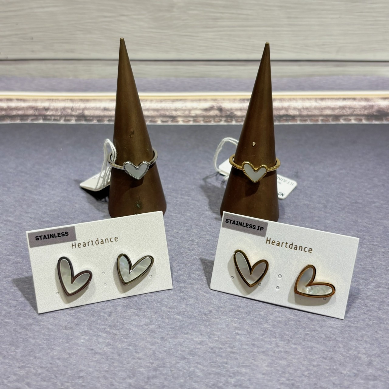 ハートモチーフが可愛いこちらの2点。 ハート部分がシェル素材で、光の当たり方でキラッと色味が変わる特有の輝きが特徴で高みえ◎ 手元、顔周りを明るく見せてくれます! どちらもステンレス素材で、汗水に強く、お肌にも優しいので、アレルギーの方も安心してお使い頂けます! カラーはシルバー、ゴールドの2色展開です☆