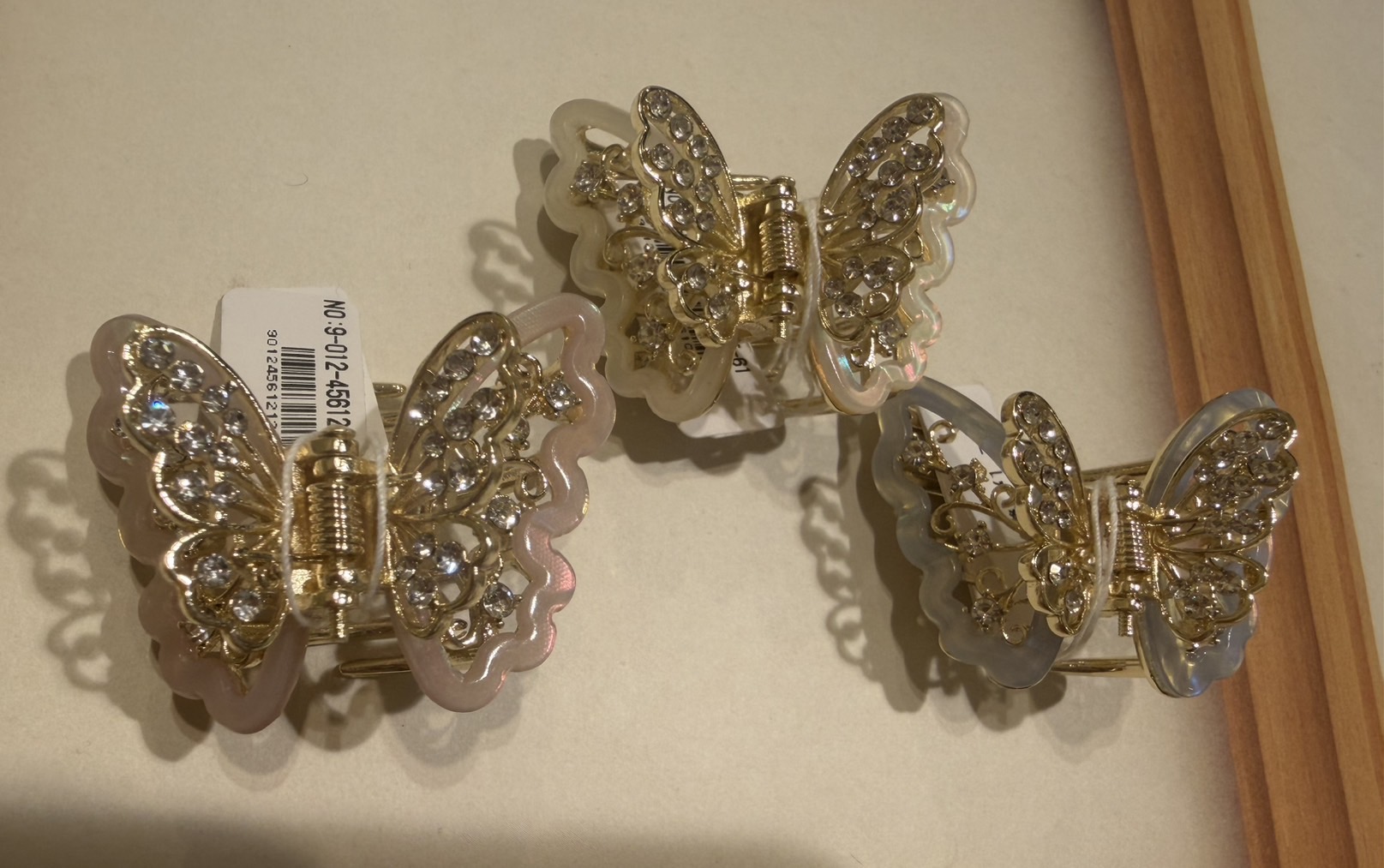 1、キラキラ光る蝶々のデザインが、今っぽい! 2、ミニサイズなので、ハーフアップに使うのがおすすめ! 3、ストーンの使い方が、くどすぎなくて可愛い! 4、お色が比較的はっきりしているので、使い分けると楽しい! 5、お子様でも付けれるサイズ感が、嬉しい!