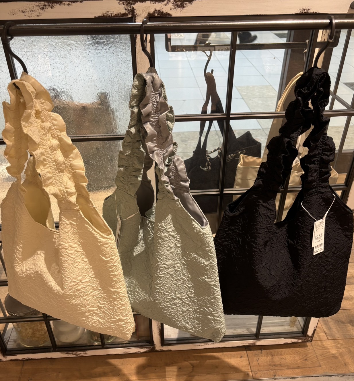 コーデに合わせていただくととても春らしい印象にしてくれるフリルトートとなっております♪