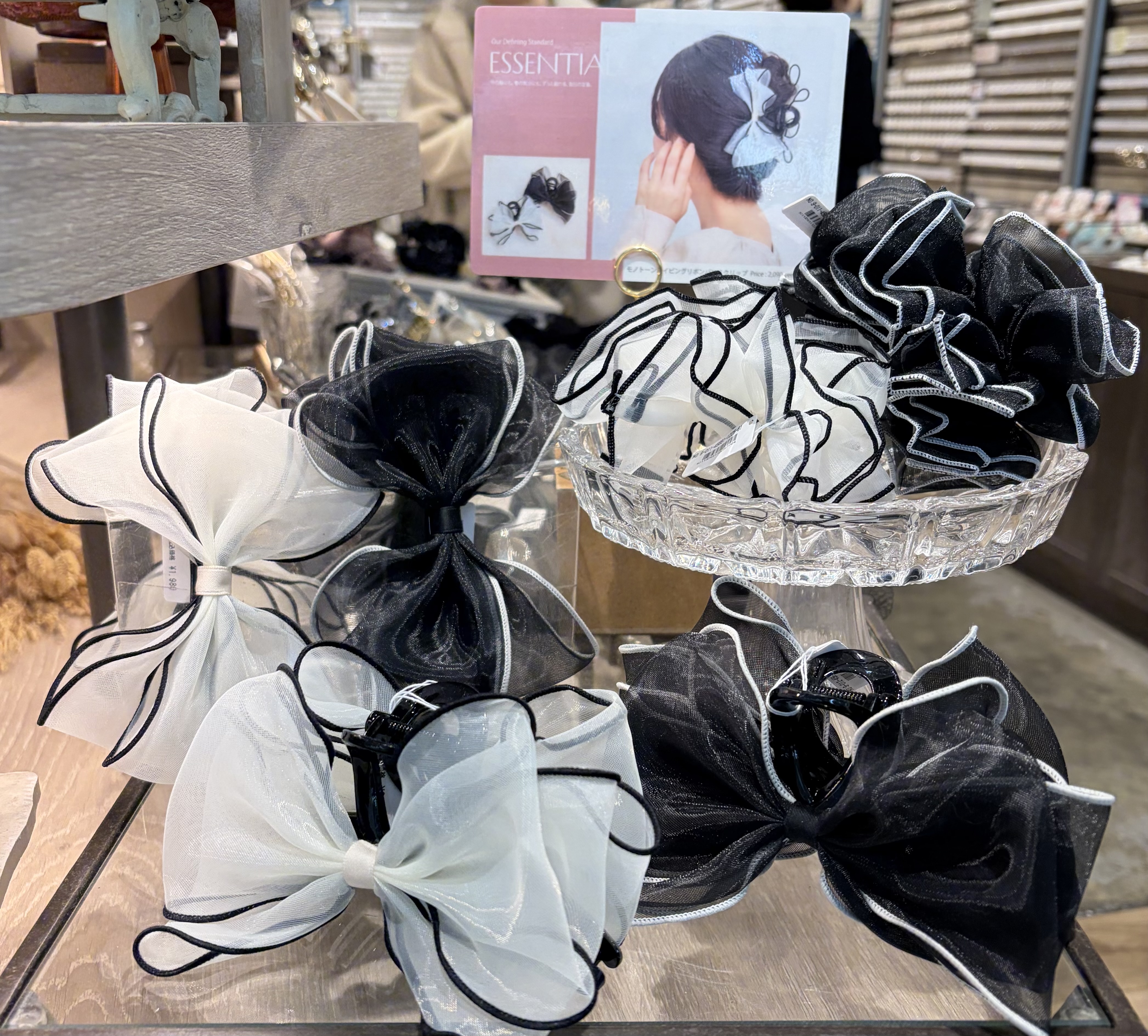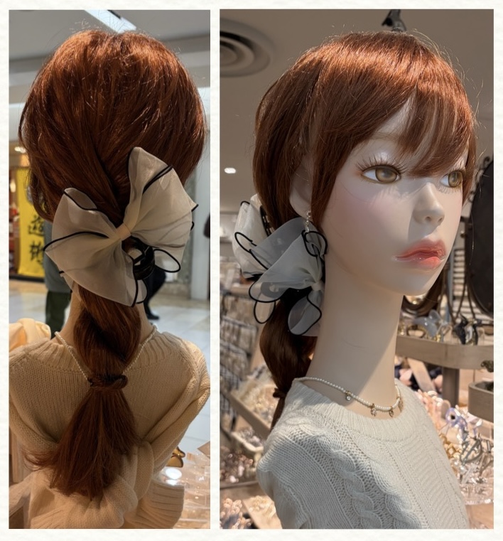 甘くなりがちなリボンをモノトーンカラーで引き締めたモダンな印象に✨ リボンはふんわりと立体感があるのでつけるだけでガラッと印象が変わりますよ✧*。 明るく清潔感があるホワイトカラーでフェミニンに♡ シックで大人っぽい印象で甘さを抑えたいきれいめ派の方にはブラックカラーがおすすめ♡